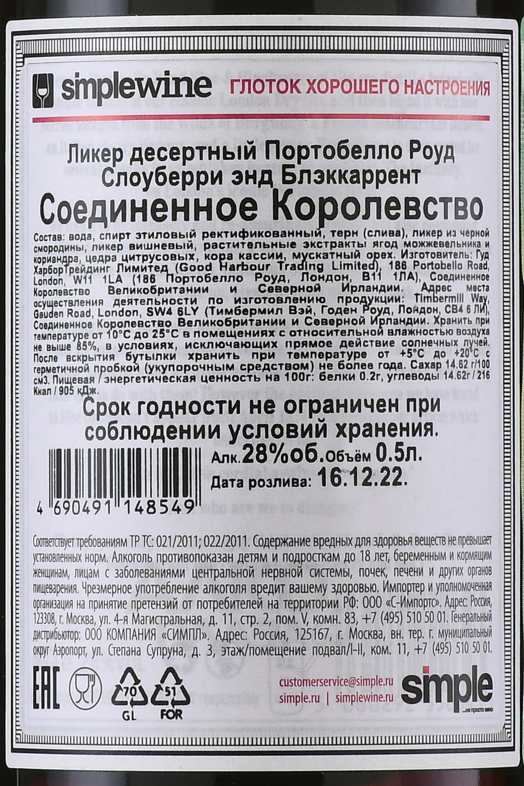 Portobello Road Sloeberry & Blackcurrant - ликер Портобелло Роуд Слоуберри энд Блэккаррент 0.5 л