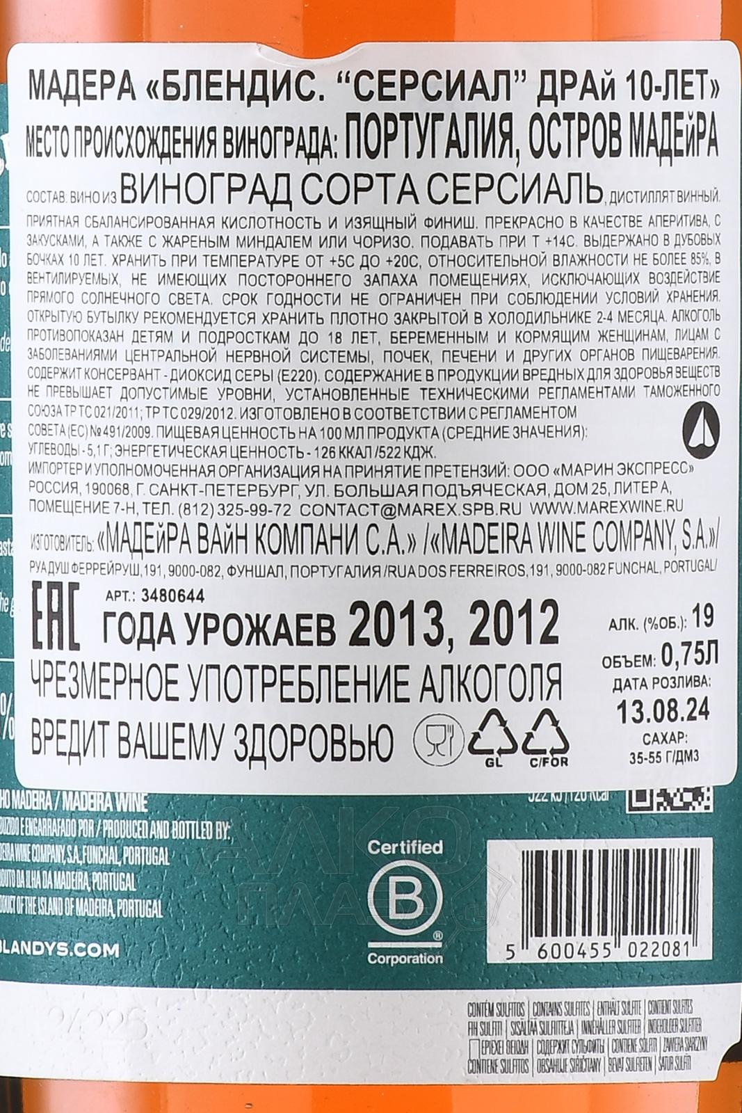 Мадера Blandy`s Sercial Dry 10 лет 0,75 л создаётся на острове, где виноградники растут на террасах и вулканических склонах. Участки с лозами располагаются на высоте 300–600 м, что позволяет ягодам сохранять высокую кислотность в процессе созревания. Почвы здесь богаты базальтом и минералами. Климат — субтропический, с частыми ветрами и резкими перепадами температуры, которые замедляет поспевание. После сбора ягоды мягко прессуют, чтобы сохранить деликатные характеристики. Сусло ферментируют под в режиме термоконтроля, а затем крепят винным спиртом, когда концентрация сахара остаётся минимальной. Далее напиток проходит десятилетний цикл выдержки в системе canteiro, где бочки располагают под потолком в тёплых помещениях. Постепенный нагрев и движение вина внутри ёмкостей формируют сложную структуру, акценты зрелости и глубокий минеральный рисунок.