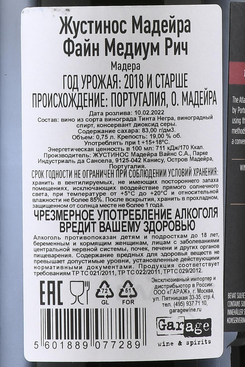 Justino’s Madeira Fine Medium Rich - Жустинос Мадера Файн Медиум Рич 0.75 л