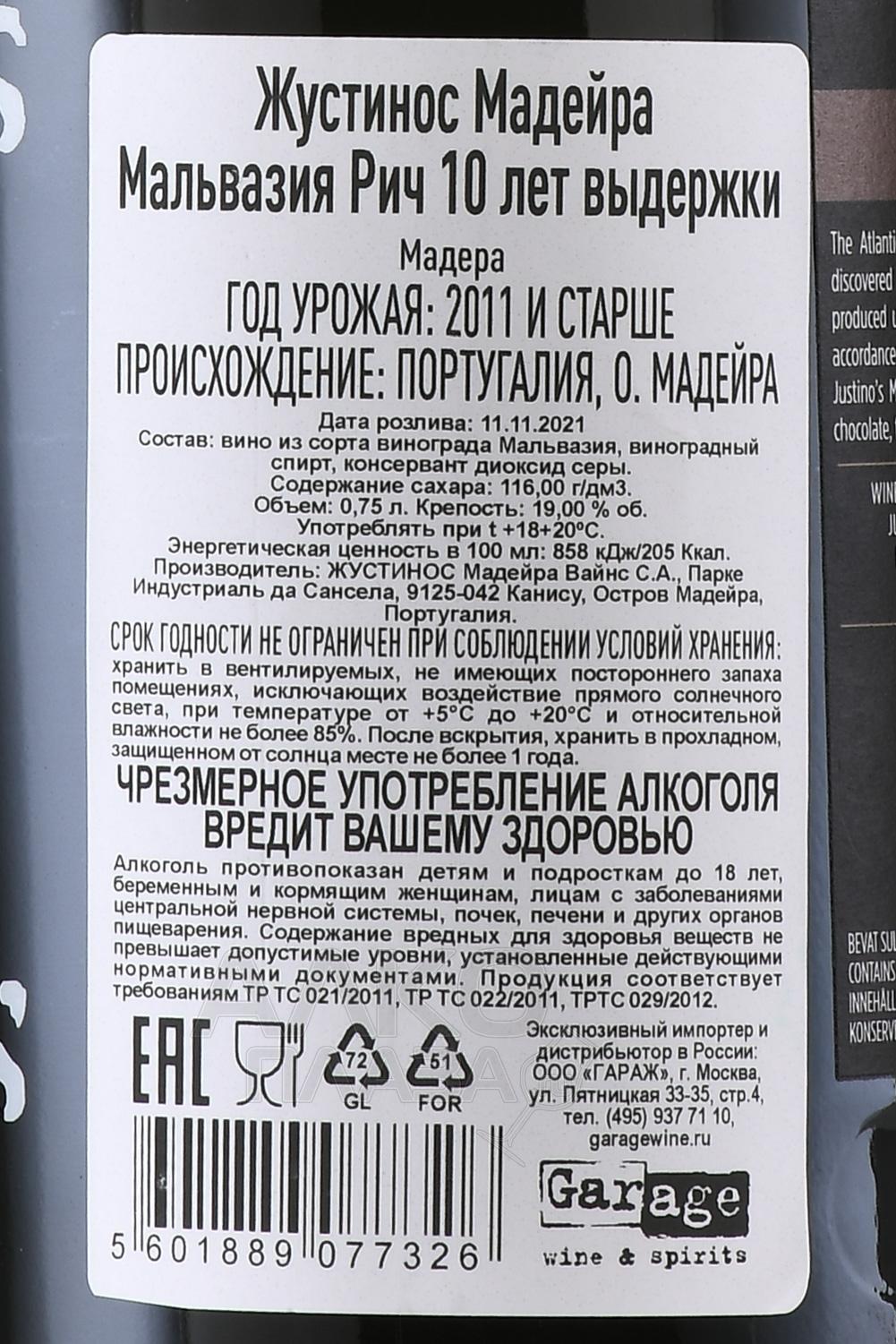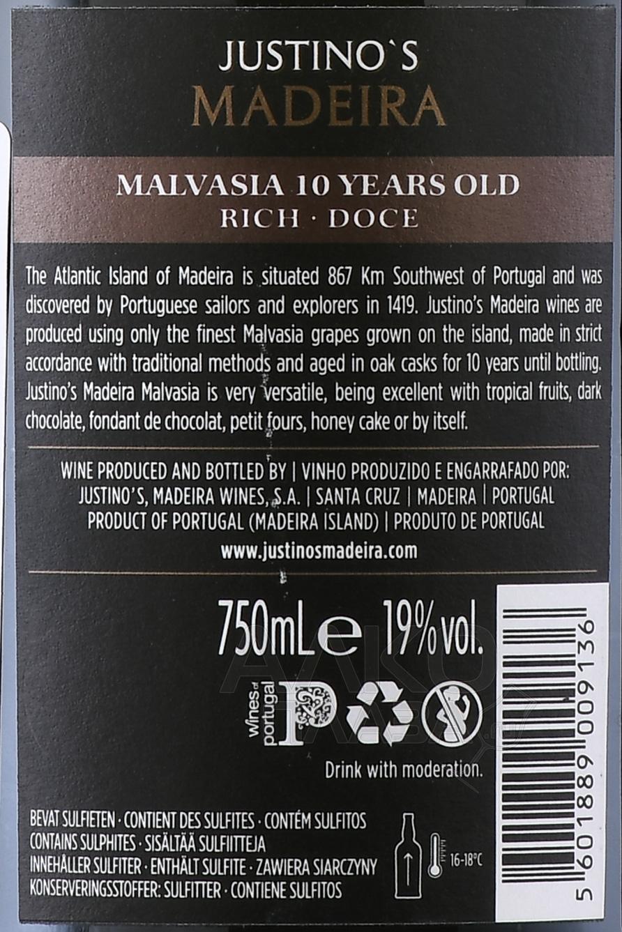 Justino’s Madeira Malvasia Rich - Жустинос Мадера Мальвазия Рич 10 лет 0.75 л