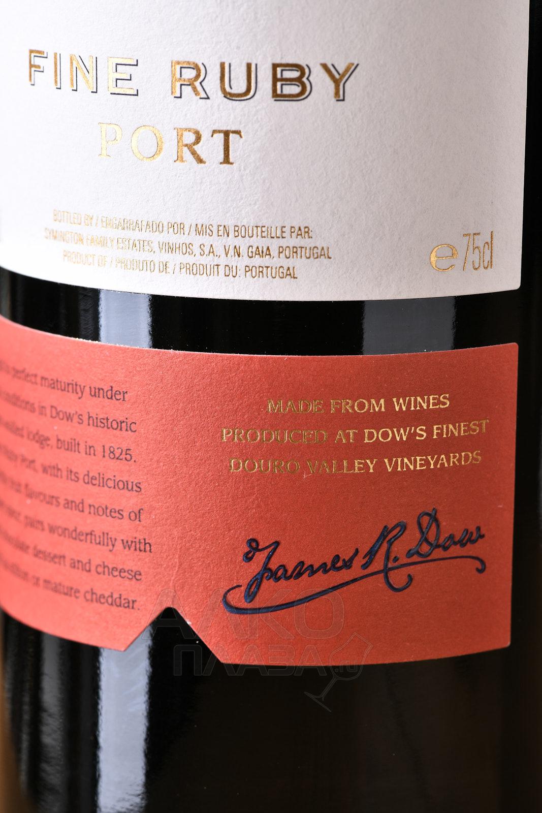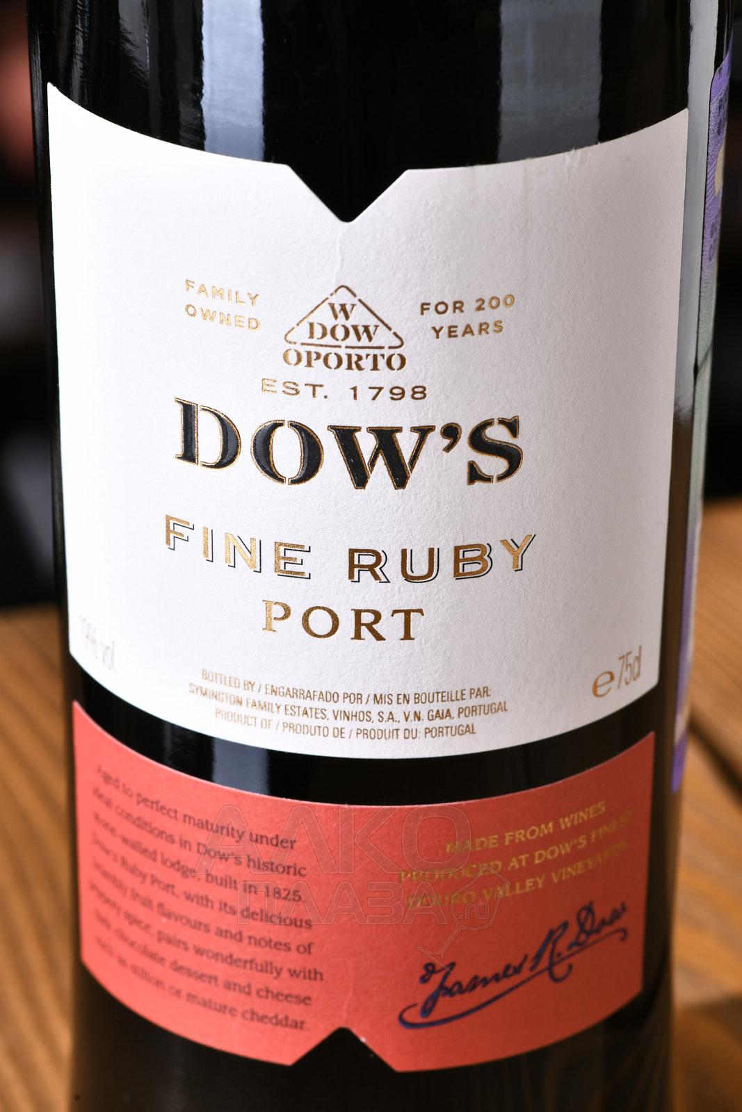 Портвейн Dows Fine Ruby 0.75 л – сладкое красное крепленое португальское вино из знаменитого региона Дору. Для производства портвейна используются традиционные сорта страны. Выдержка осуществляется в дубовых бочках не менее 3 лет.