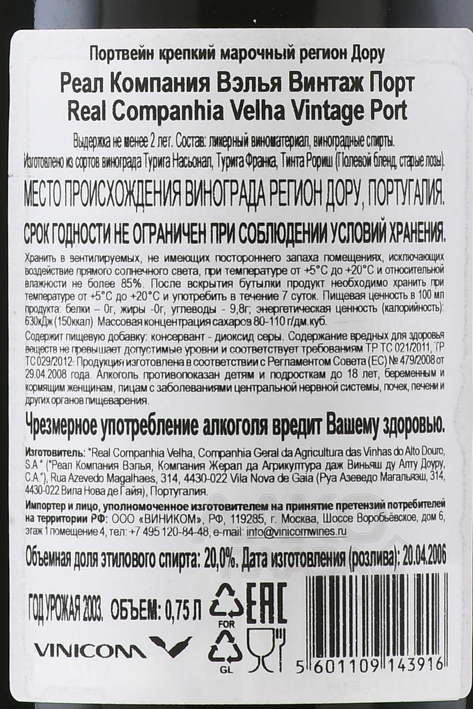 Real Companhia Velha Vintage Port 2001 Wooden Box - портвейн Реал Компания Велья Винтаж Порт 2001 0.75 л в д/у
