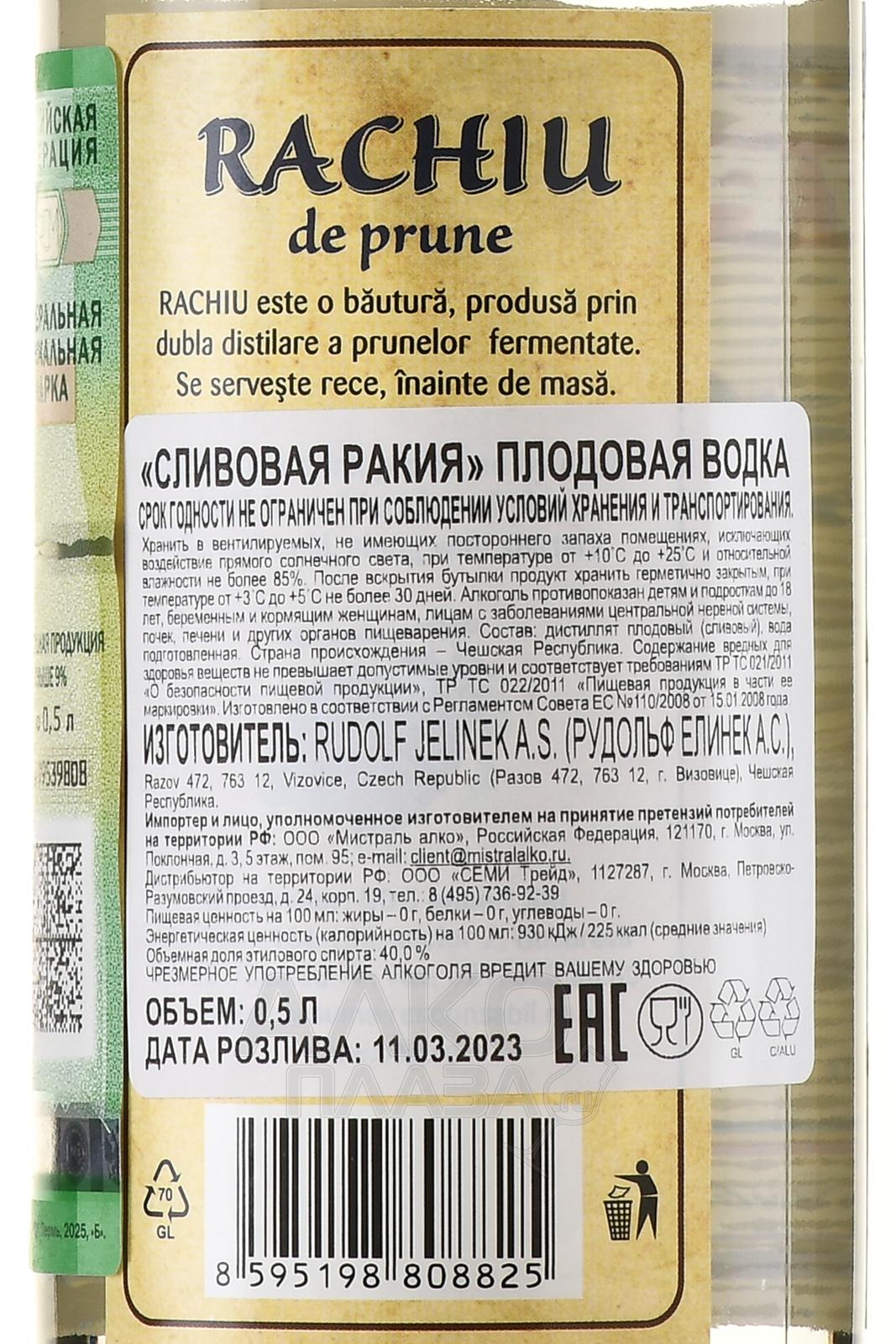 Rachiu de Prune - Сливовая ракия 0.5 л