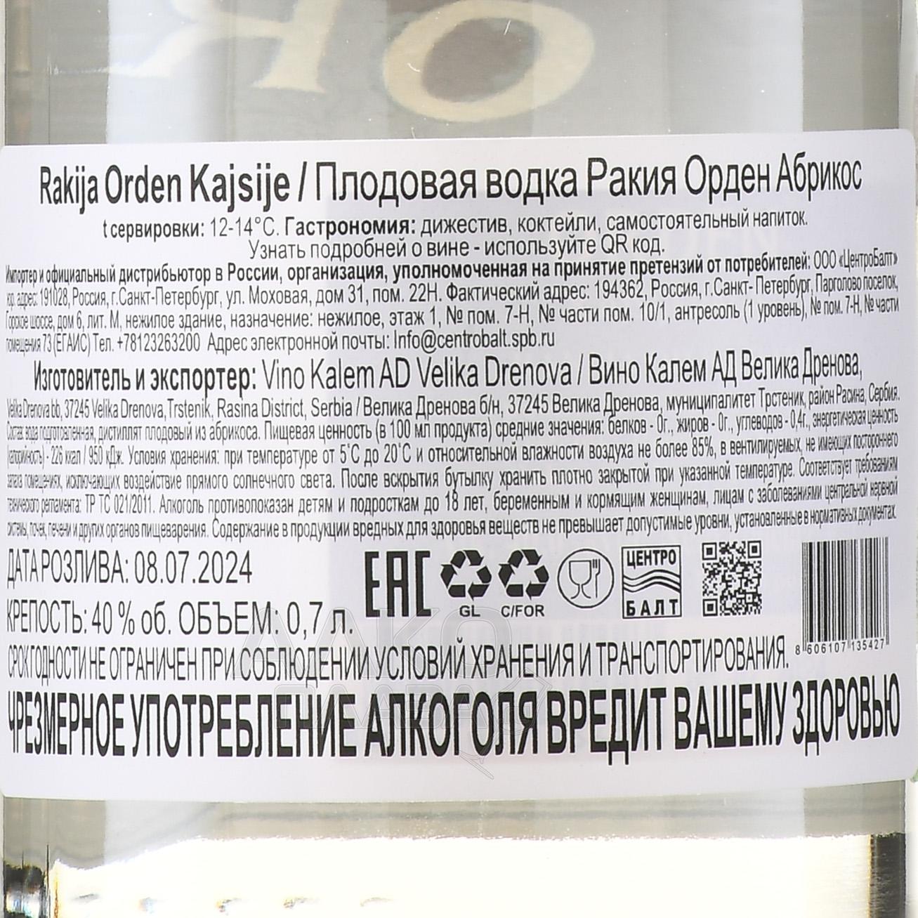 Ракия Orden Apricot 0,7 л в п/у производится в Болгарии, где крепкие фруктовые дистилляты занимают особое место в национальной алкогольной культуре. Основой образца служат зрелые абрикосы, выращенные в плодородных долинах с черноземными и известняковыми почвами. Терруар отличается мягким климатом с солнечным летом и умеренными дождями, что создает благоприятные условия для формирования выраженной сахаристости и насыщенной органолептики. Плоды проходят тщательный отбор, затем подвергаются медленной ферментации, после чего спирт получают методом двойной дистилляции. Такой способ сохраняет фруктовую основу и придает напитку чистоту и характер, а выдержка в нейтральных емкостях помогает сохранить свежесть и ароматический баланс.