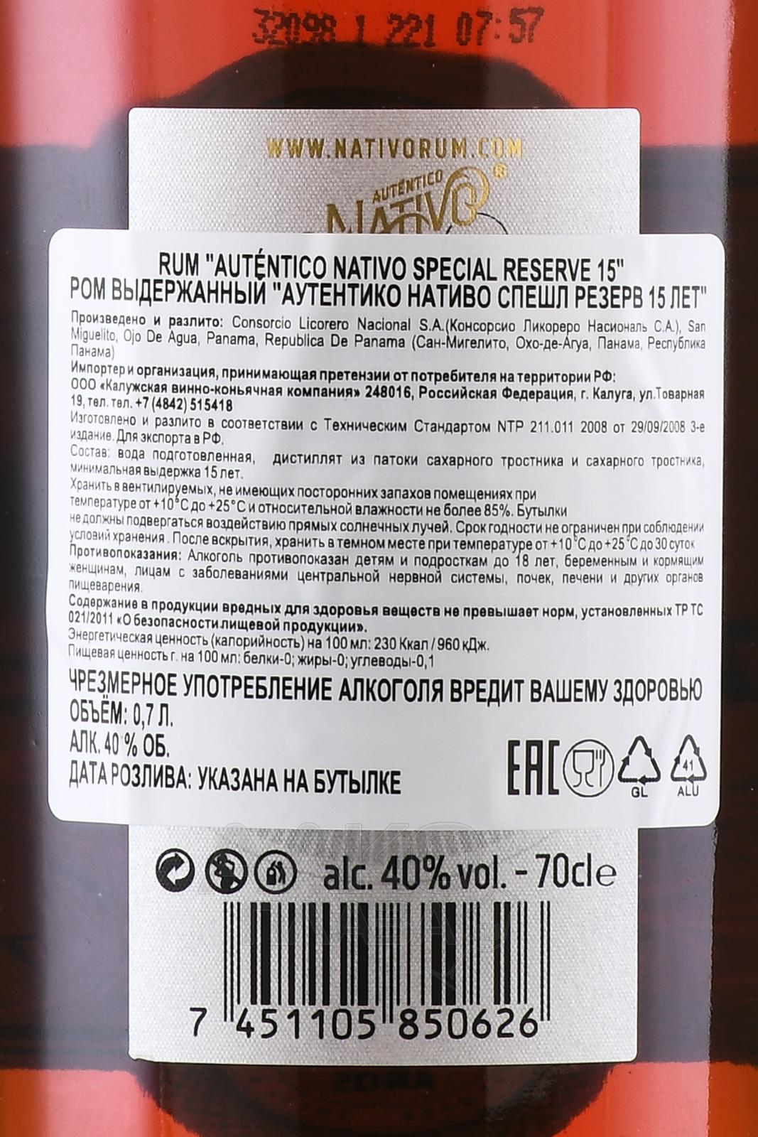 Autentico Nativo Special Reserve in tube - ром Аутентико Нативо Спешл Резерв 15 лет в тубе 0.7 л