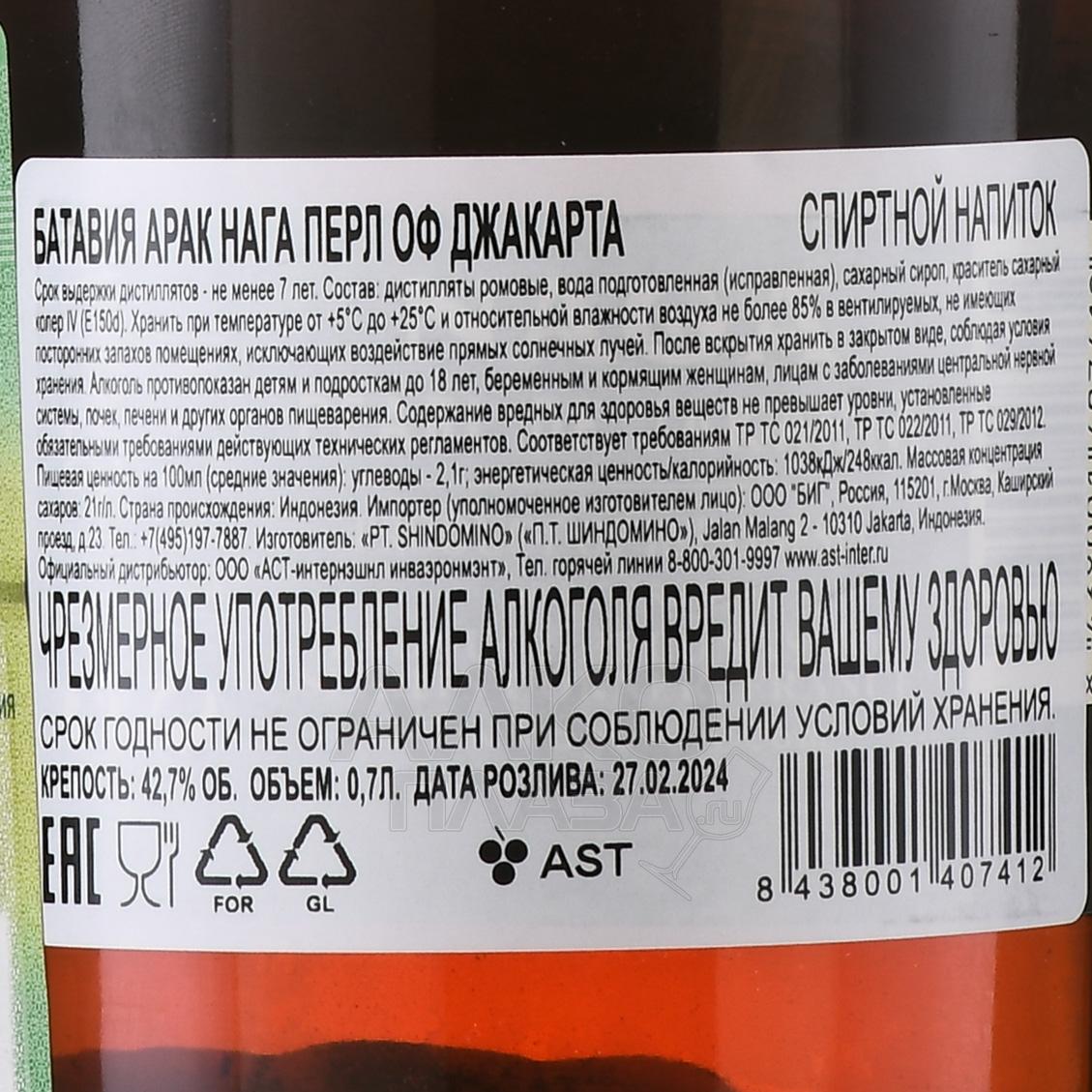 Ром Batavia Arrack Naga Pearl of Jakarta 0,7 л в тубе – это редкий и аутентичный индонезийский напиток, изготовленный по старинной технологии. Его получают перегонкой тростниковой мелассы с добавлением красного риса, который проходит процесс ферментации на диких дрожжах. Дистиллят выдерживается в бочках из тикового и дубового дерева, что придает купажу сложный характер и насыщенную структуру. Производство происходит на острове Ява, где влажный тропический климат и высокая температура способствуют быстрому созреванию спирта, формируя богатую палитру вкусов. Этот ром выделяется своей маслянистой текстурой, мягкими специями и характерной глубиной аромата, которую невозможно встретить в классических карибских образцах.