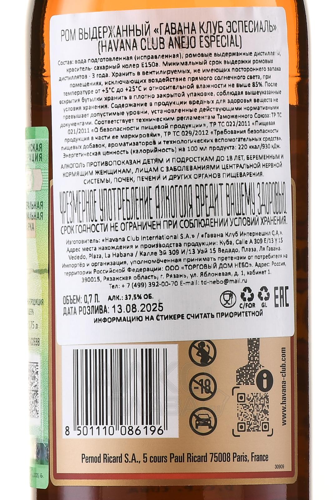 Havana Club Anejo Especial - ром Гавана Клуб Аньехо Эспесиаль 0.7 л