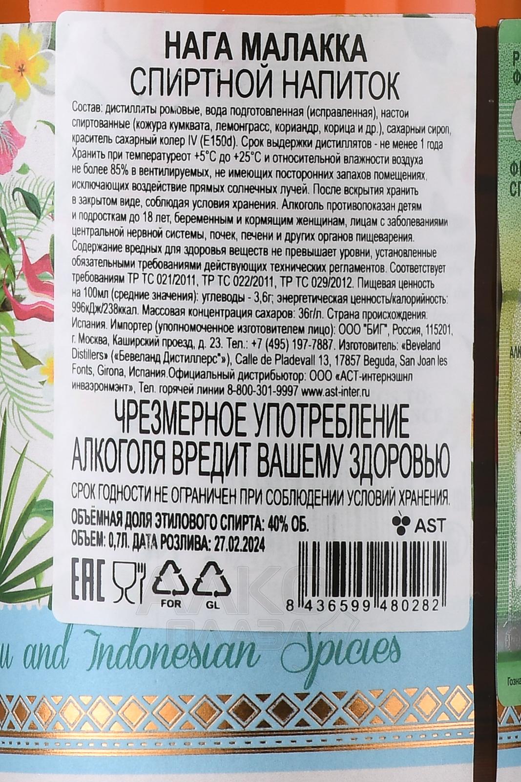 Ром Naga Malacca 0,7 л – это премиальный напиток из Индонезии, созданный на основе традиционной технологии Batavia Arrack. Для его производства используют тростниковую мелассу и красный рис, который проходит особую ферментацию под действием местных дрожжей. Затем дистиллят выдерживается в дубовых бочках, что придает ему сложный характер и гармоничное звучание. Этот релиз отличается мягким стилем и подчёркнутой экзотичностью, отражающей климат региона. Влажные тропики, постоянное солнце и богатые вулканические почвы создают условия, в которых формируется уникальное сырье. Историческая связь образца с Малаккским проливом подчеркивает его аутентичность: именно через этот путь ром экспортировался в Европу ещё в XVII веке. В отличие от стандартных карибских ромовых спиртов, Нага Малакка сохраняет азиатскую специфику, сочетая сладость тростника с пряными полутонами, что делает его особенно ценным для коллекционеров и знатоков.