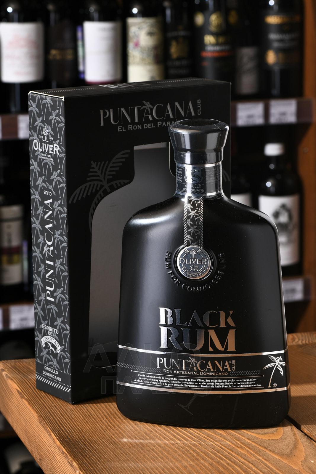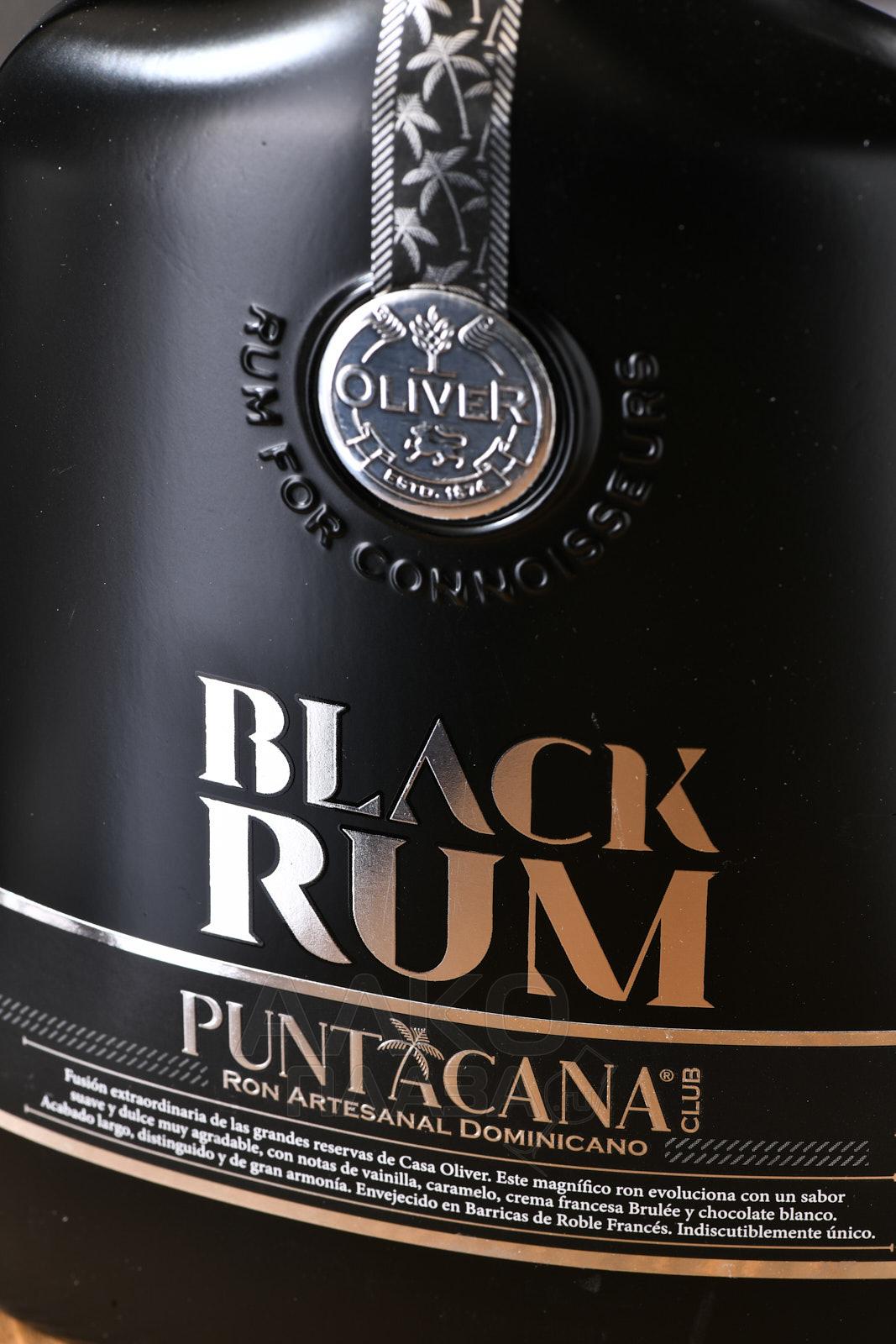 Ром Puntacana Club Black Oliver 0,7 л в солидной черной сувенирной коробке с прозрачной вставкой предлагается одним из самых известных хозяйств Доминиканской Республики. В купаже присутствуют старые тростниковые спирты — их возраст исчисляется 12-25 годами. Выдержка проводилась по сложной системе солера.