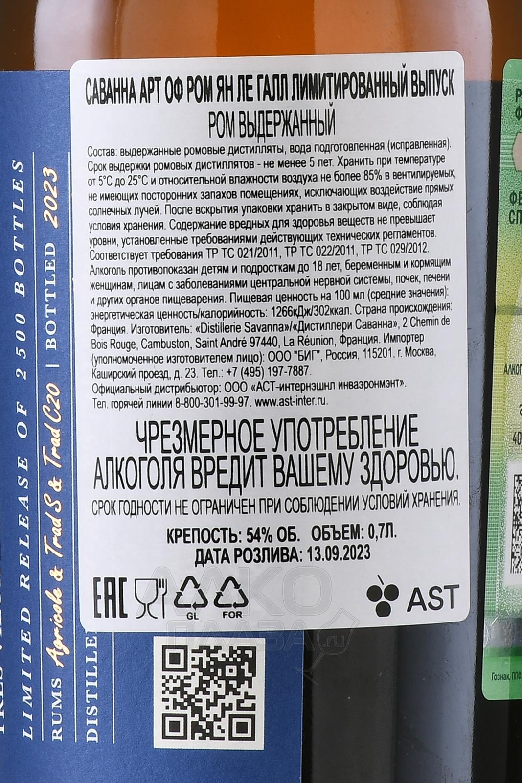 • Savanna Art of Rum by Yann Le Gall - ром Саванна Арт оф Ром Ян Ле Галл 0.7 л в п/у