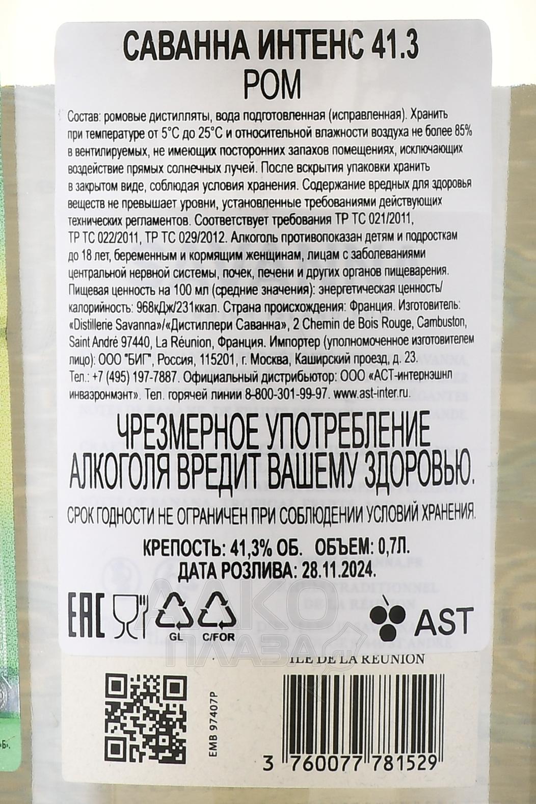 Savanna Intense - ром Саванна Интенс 0.7 л