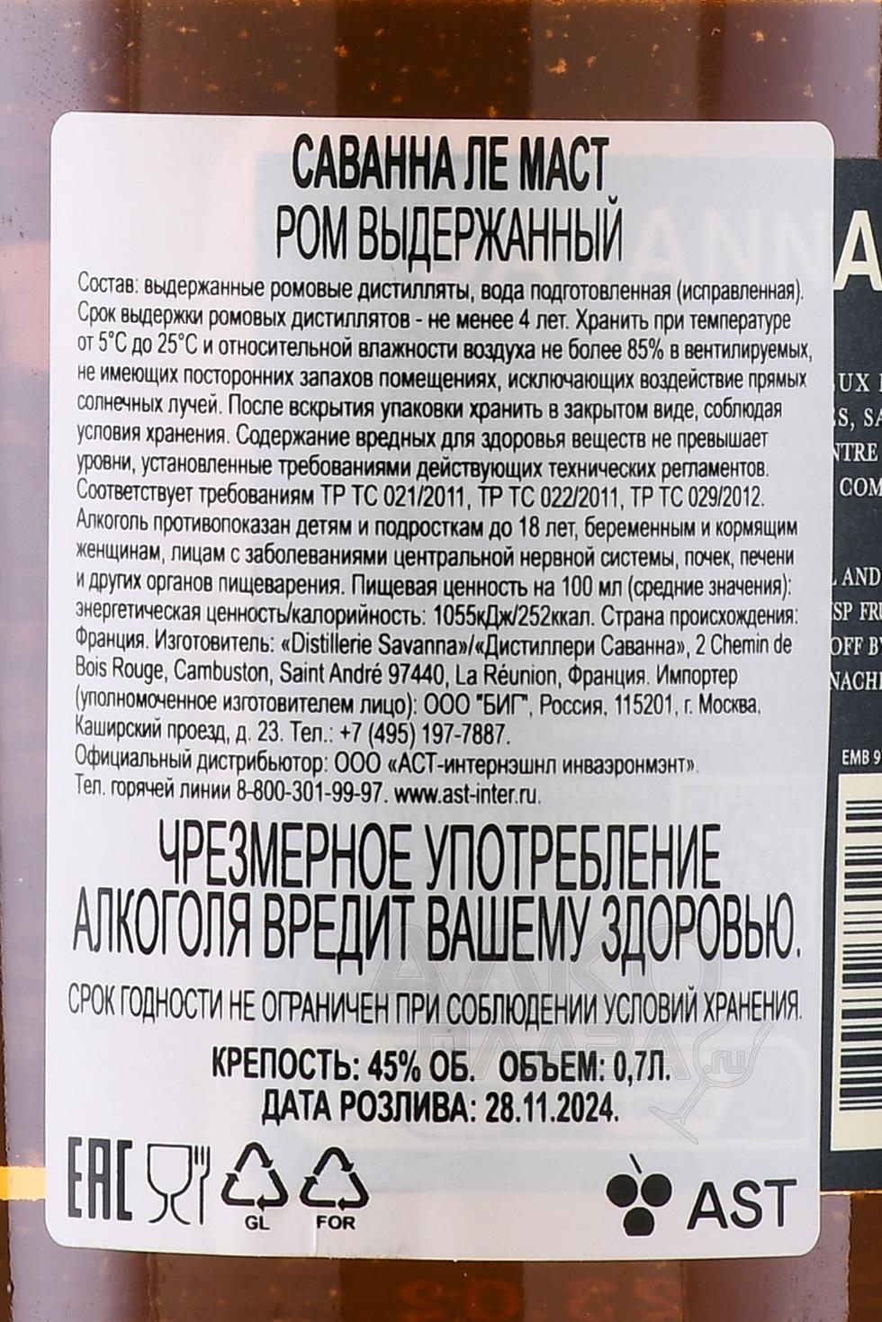 Savanna Le Must - ром Саванна Ле Маст 0.7 л в п/у
