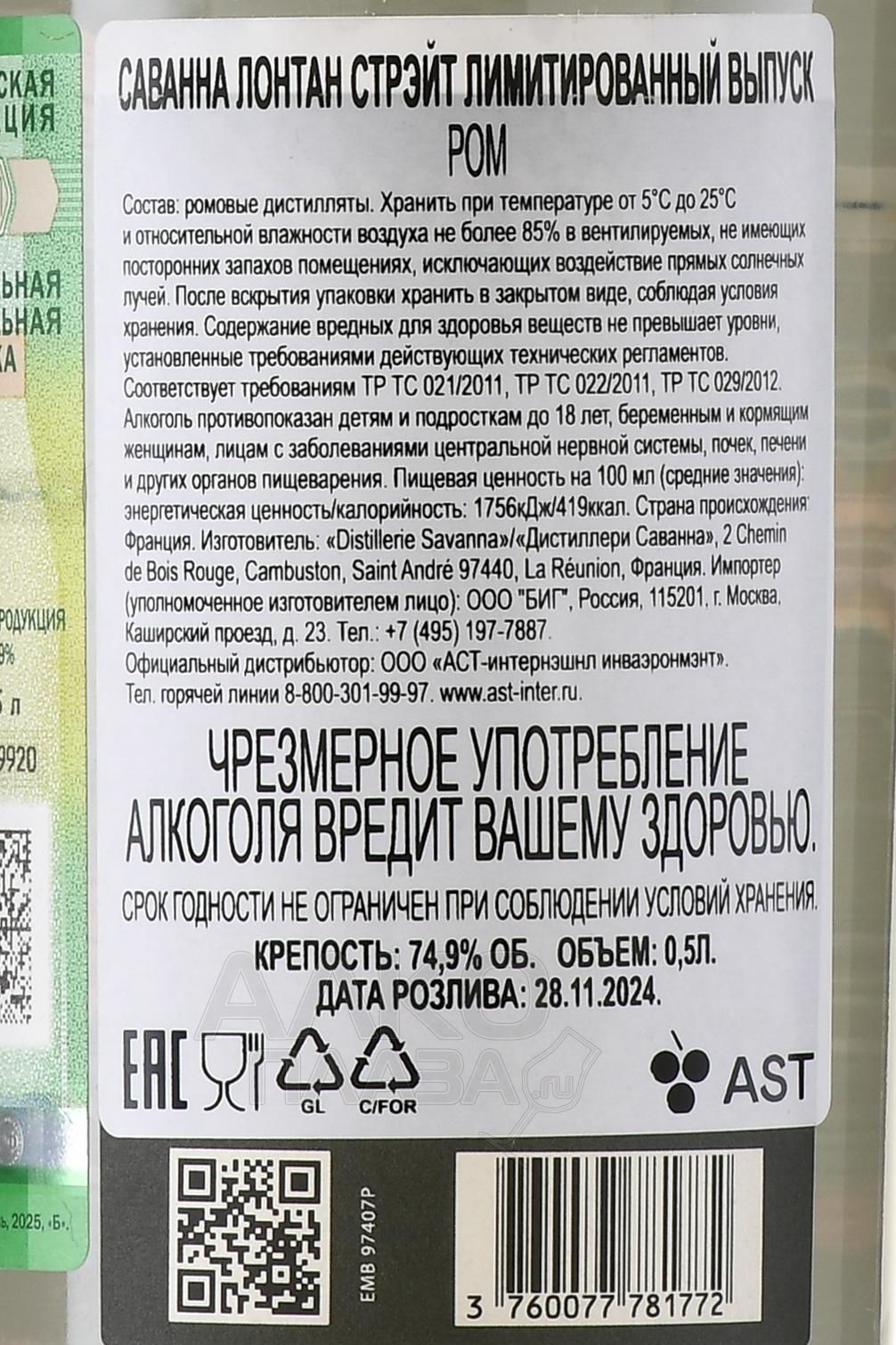 Savanna Lontan Straight - ром Саванна Лонтан Стрэйт 0.5 л