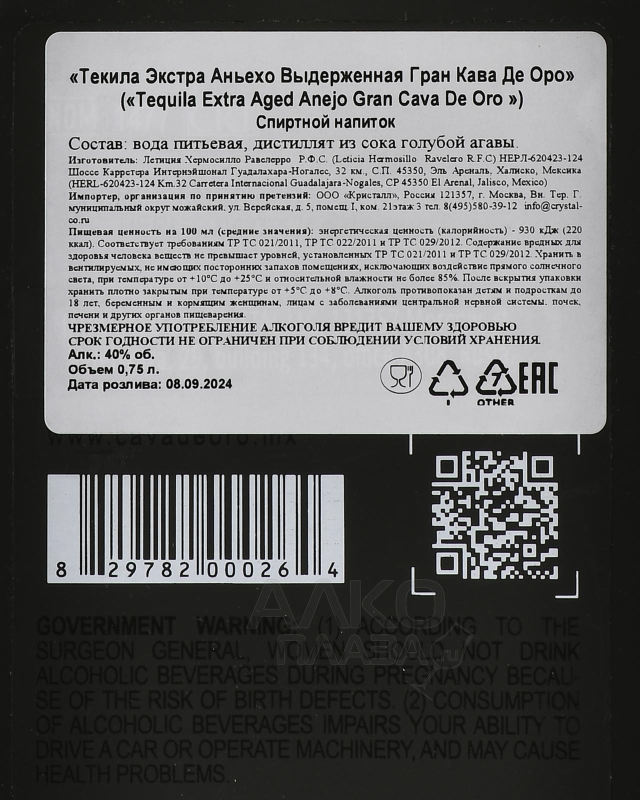 Gran Cava De Oro Extra Anejo Black - текила Гран Кава Де Оро Экстра Аньехо 0.75 л