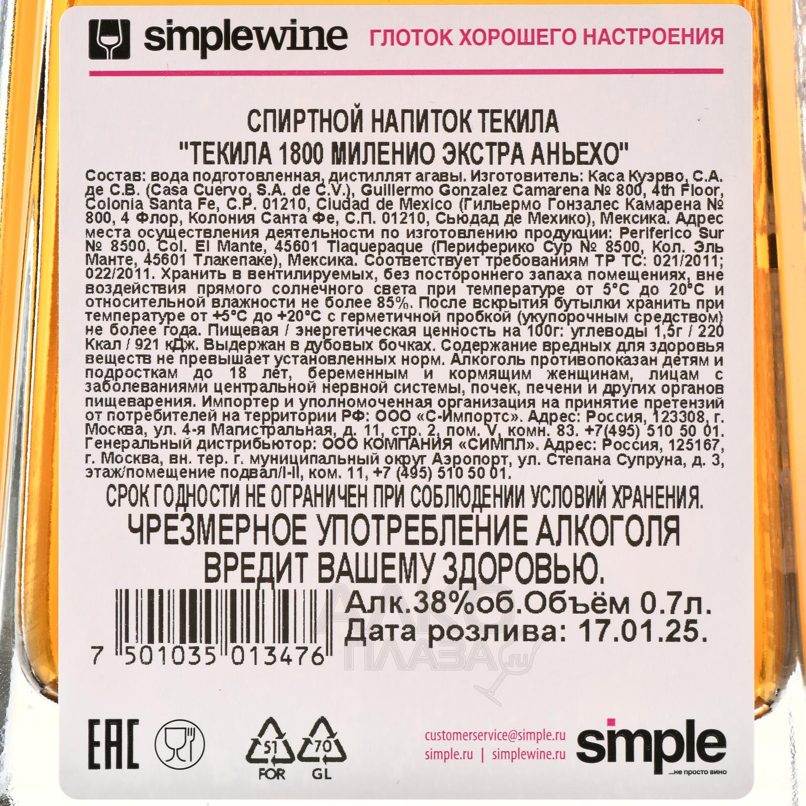 Jose Cuervo 1800 Milenio Extra Anejo - текила Хосе Куэрво 1800 Миленио Экстра Аньехо 0.7 л в п/у