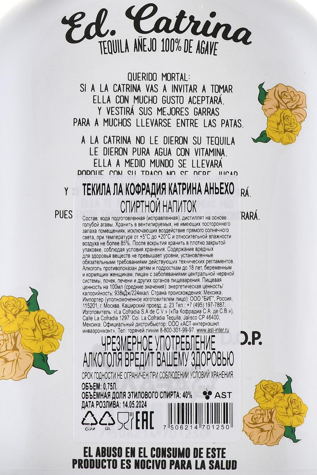 La Cofradia Ed Catrina Anejo - текила Ла Кофрадия Катрина Аньехо 0.75 л