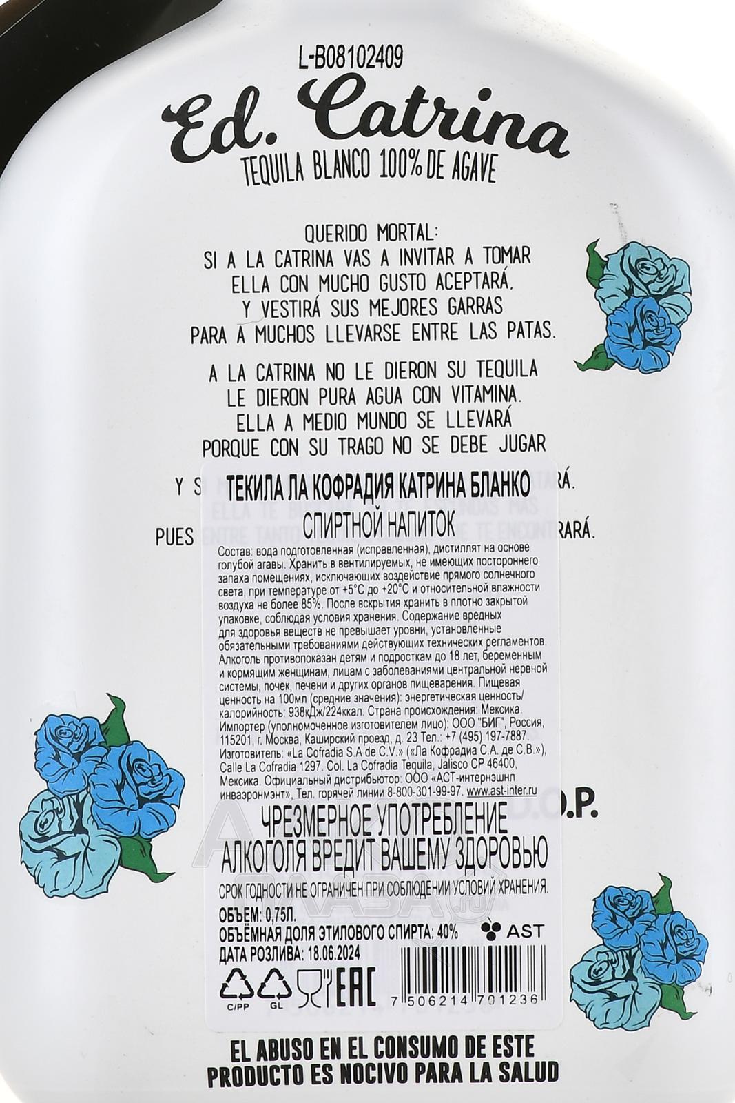 La Cofradia Ed Catrina Blanco - текила Ла Кофрадия Катрина Бланко 0.75 л