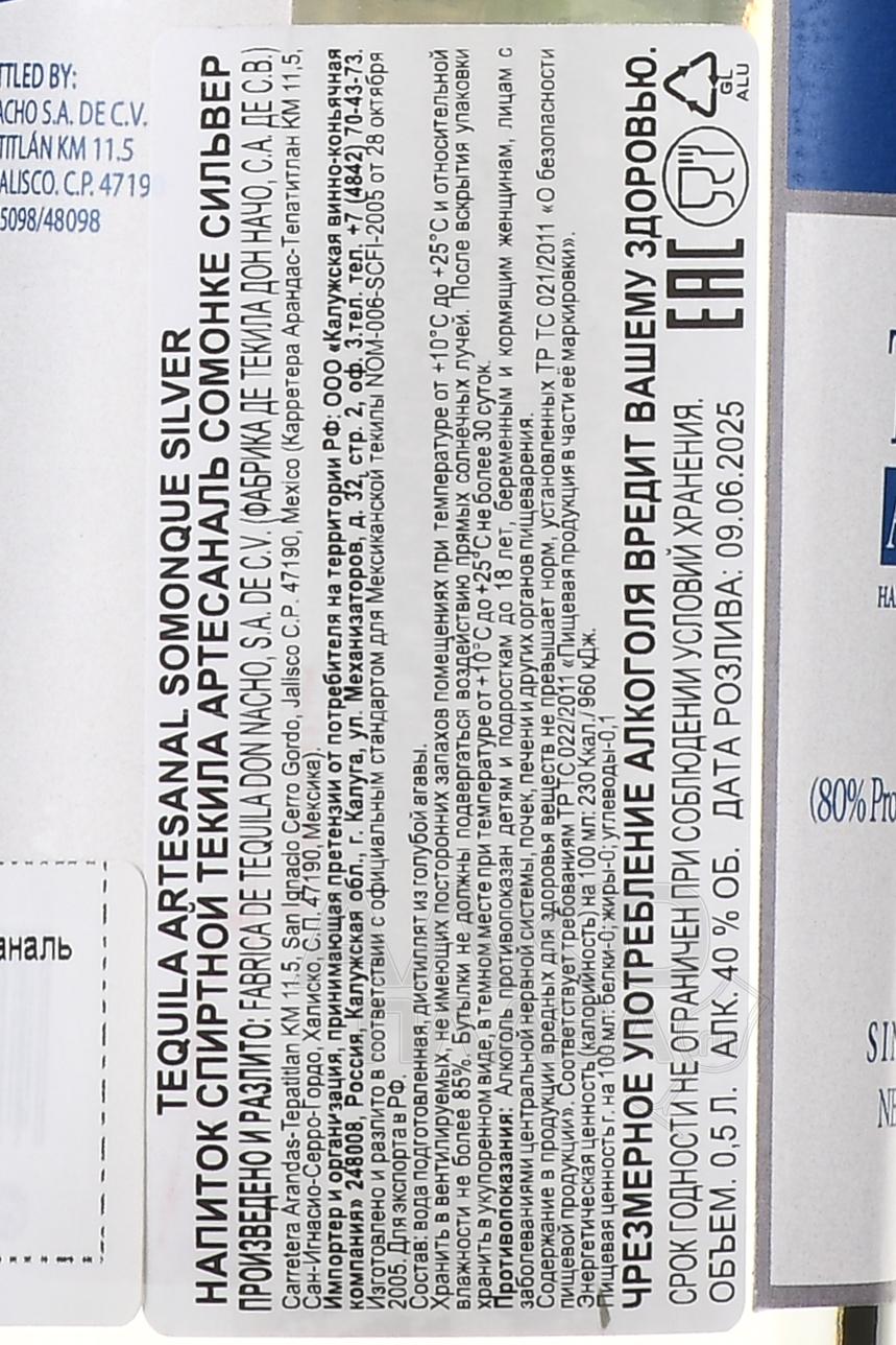Somonque Silver Artesanal - текила Сомонке Сильвер Артесаналь 0.5 л