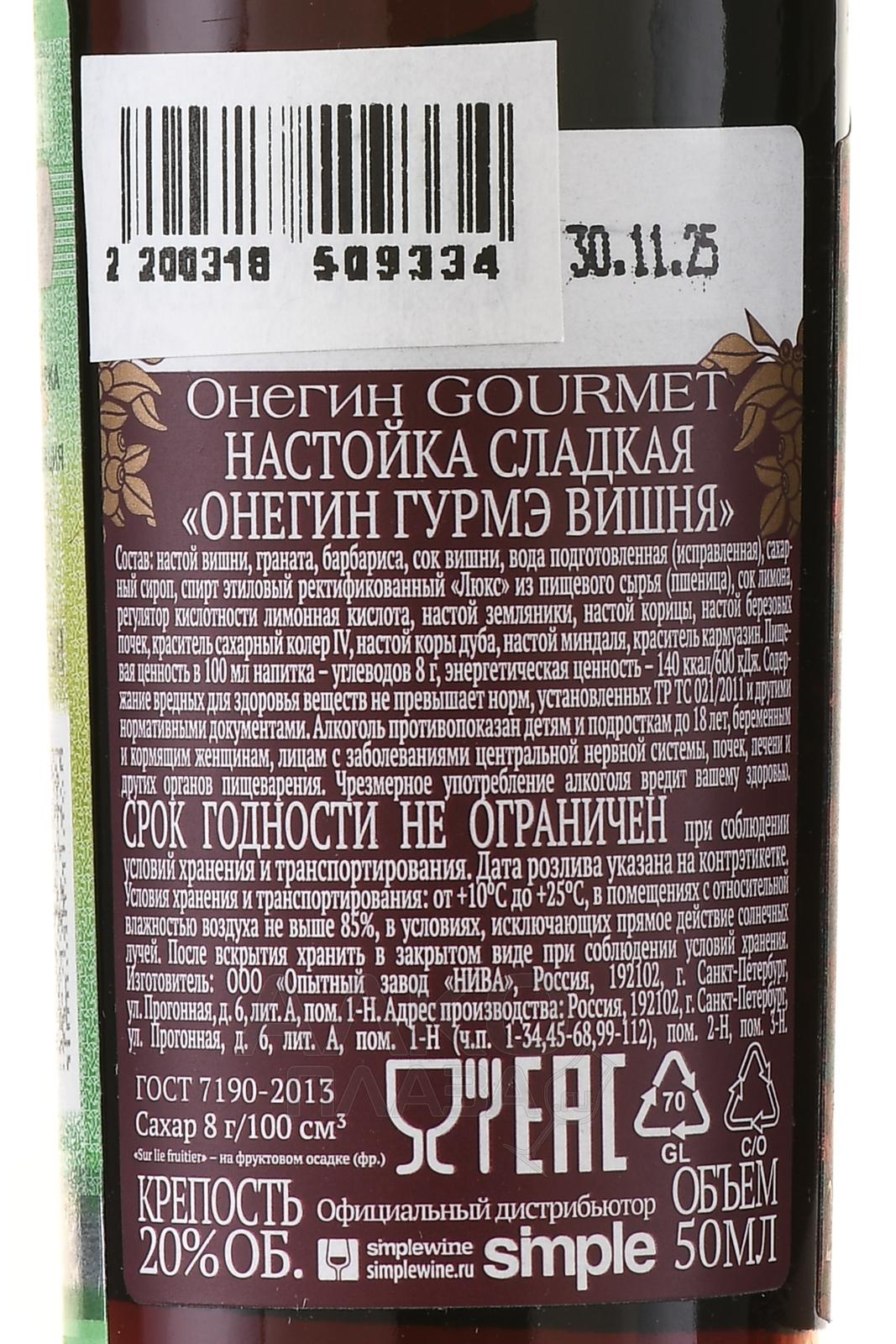 Настойка Онегин Гурмэ Вишня 0.05 л в п/у