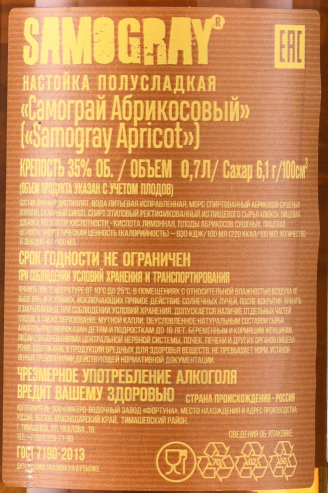 Настойка полусладкая Самограй Абрикосовый 0,7 л создана по традиционным рецептам, где в основе лежит сочетание натурального дистиллята и фруктового сырья. Для приготовления используются спелые абрикосы, собранные в период максимальной сахаристости, что обеспечивает напитку мягкость и выразительный фруктовый характер. Плоды проходят настаивание на зерновом спирте с последующим добавлением очищенной воды и сахара, благодаря чему достигается баланс сладости и свежести. Крепость удерживается на среднем уровне, что делает образец доступным и легким для восприятия. Производитель сохраняет акцент на натуральности — купаж не содержит искусственных красителей и ароматизаторов, а вкус строится исключительно на свойствах фруктового сырья. Абрикосы как основной вкусовой и ароматический ингредиент выбраны не случайно: их мясистая структура и высокое содержание эфирных масел придают настойке гармоничную структуру, а сахаристая база обеспечивает округлость.