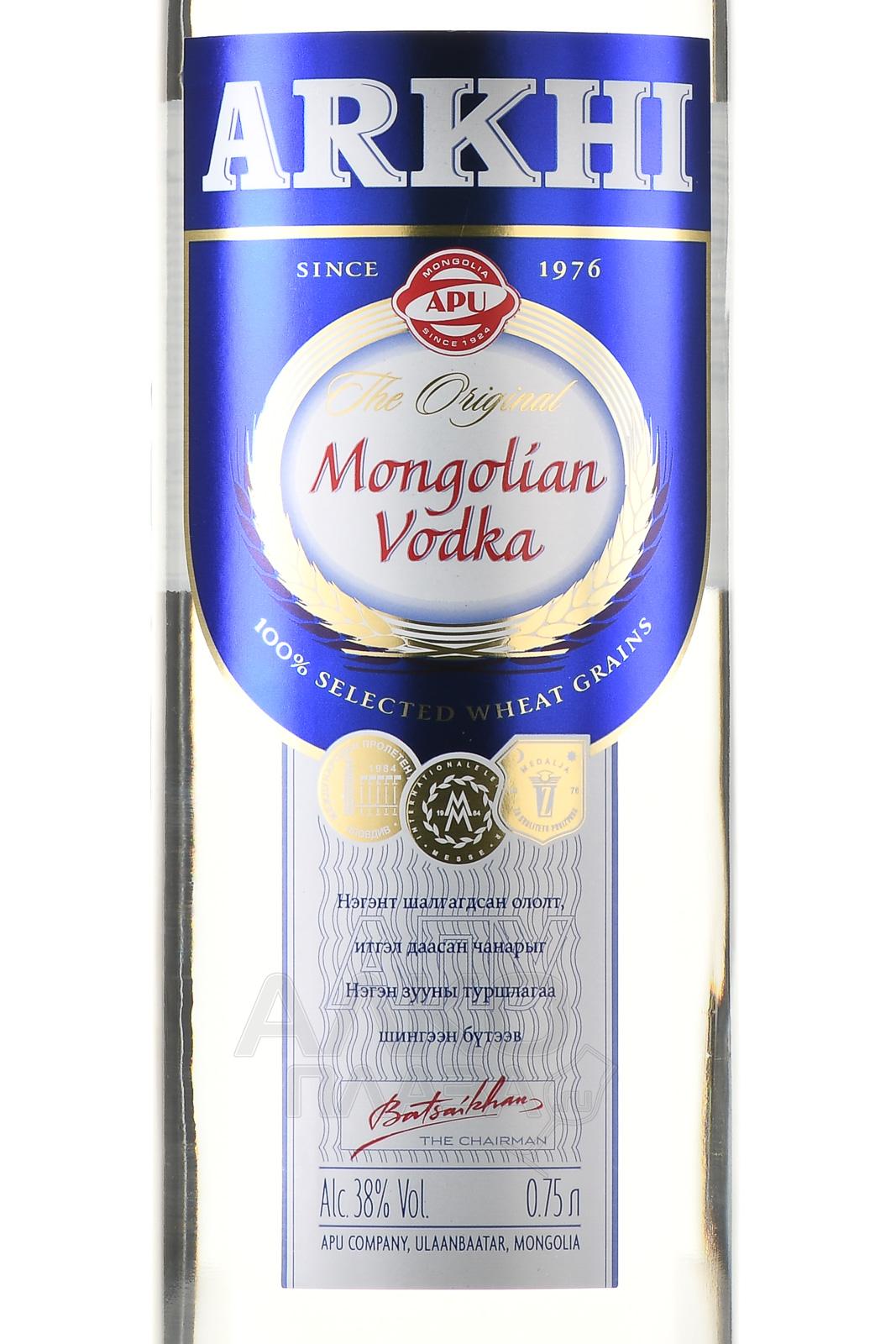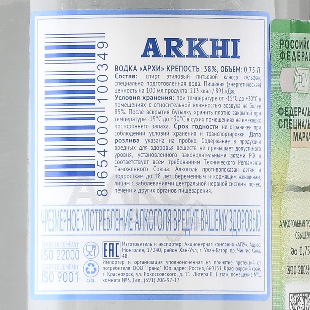 Водка Arkhi 0,75 л выпущена инновационным заводом, который является лидером на рынке крепкого алкоголя Монголии. Для производства 38-процентного напитка выбрали спирт из цельных зерен пшеницы, выработанный в ректификационных колоннах. Дополнительным ингредиентом выступила вода из собственной скважины компании, добытая на глубине 179 м. Водку очистили через несколько фильтров (угольный, серебряный, кварцевый, бриллиантовый), поэтому ее вкус не проявляет резкости.