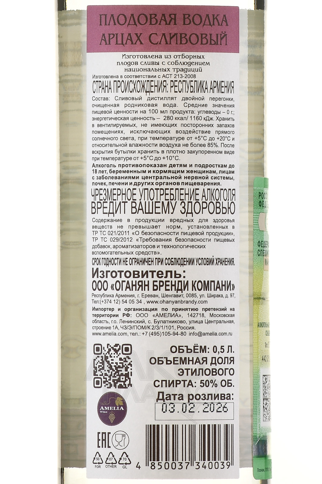 Арцах Сливовый 0,5 л в п/у – это фруктовый дистиллят, созданный по традиционным армянским рецептам. В качестве сырья производитель использовал спелые сочные сливы, выращенные в солнечном и плодородном терруаре высокогорных садов Армении. Собранные вручную плоды очистили от косточек, полученное сливовое сусло оставили сбраживаться, а затем перегнали в малых медных кубах. Спирты перед розливом разбавили водой из горных источников и отфильтровали. Бутылка в подарочной коробке подойдет на роль сувенира ценителям этнического крепкого алкоголя.