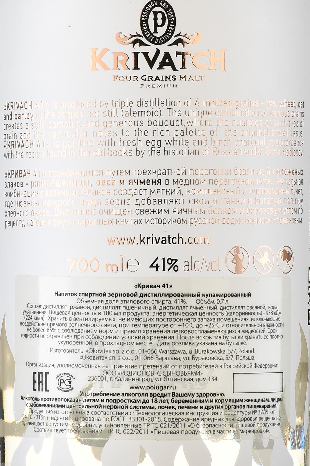 Krivach 41 - водка Кривач 41 0.7 л