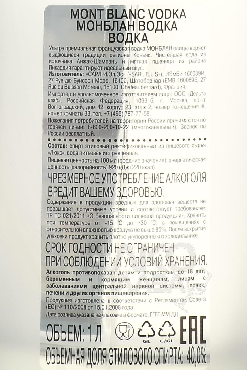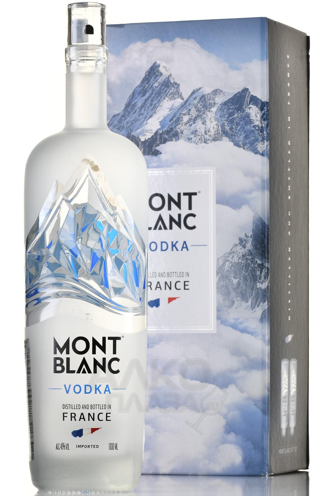 Подарочный набор из водки Mont Blanc + 2 стопки — классический подарочный сет от французской компании, который, помимо большой стеклянной бутылки с напитком, содержит водочные стопки для дегустации. Алкоголь, созданный из экологически чистых природных ингредиентов высшего качества, обладает стандартной сорокаградусной спиртуозностью. В его составе — отборная пшеница с полей области Пикардия на севере страны и чистейшая родниковая вода. Производство осуществилось по методике пятикратной перегонки с последующими фильтрацией и редукцией градуса.