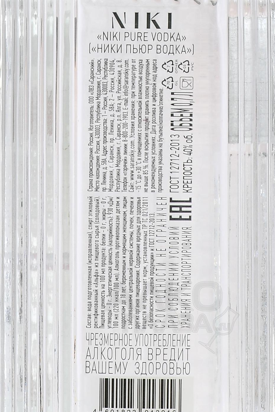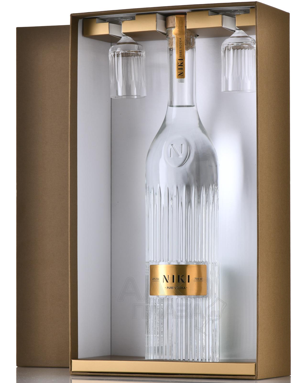 Набор Водка Niki Pure 0,7 л в п/у с 2 рюмками – это сувенирный комплект с премиальным российским напитком, отличающимся особой чистотой и мягкостью вкуса. На производство идет высококачественный зерновой спирт категории Люкс и очищенная воаы, которая проходит многоступенчатую фильтрацию с использованием березового угля и серебряных фильтров. Особенностью релиза является дополнительная обработка методом низкотемпературного вымораживания, позволяющая удалить малейшие примеси и добиться идеального баланса во вкусе. Бутылка стильного необычного дизайна с двумя элегантными аксессуарами подойдет как для ценителей качественного алкоголя, так и для подарка по особому случаю.