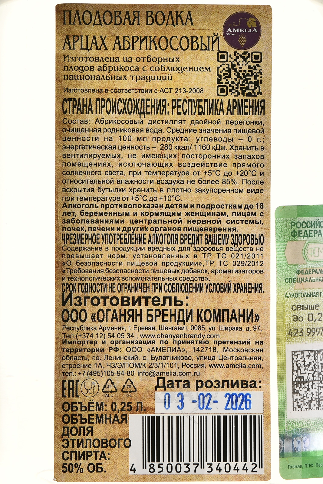 Водка Арцах Абрикосовый 0.25 л в чехле