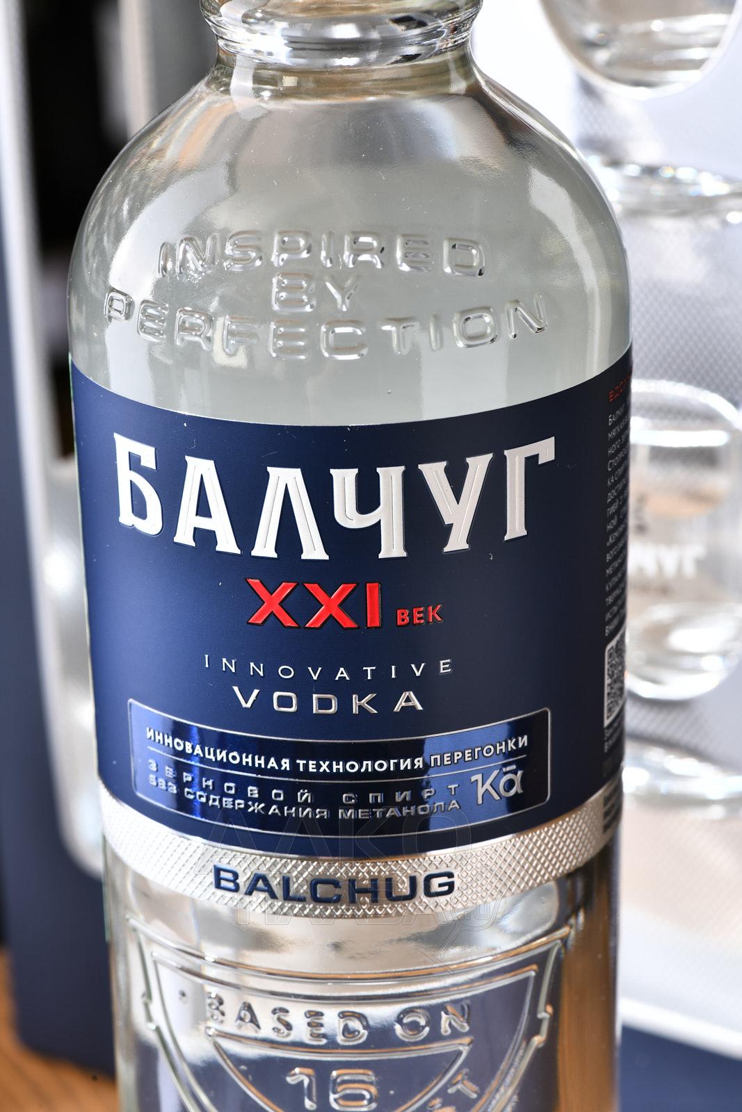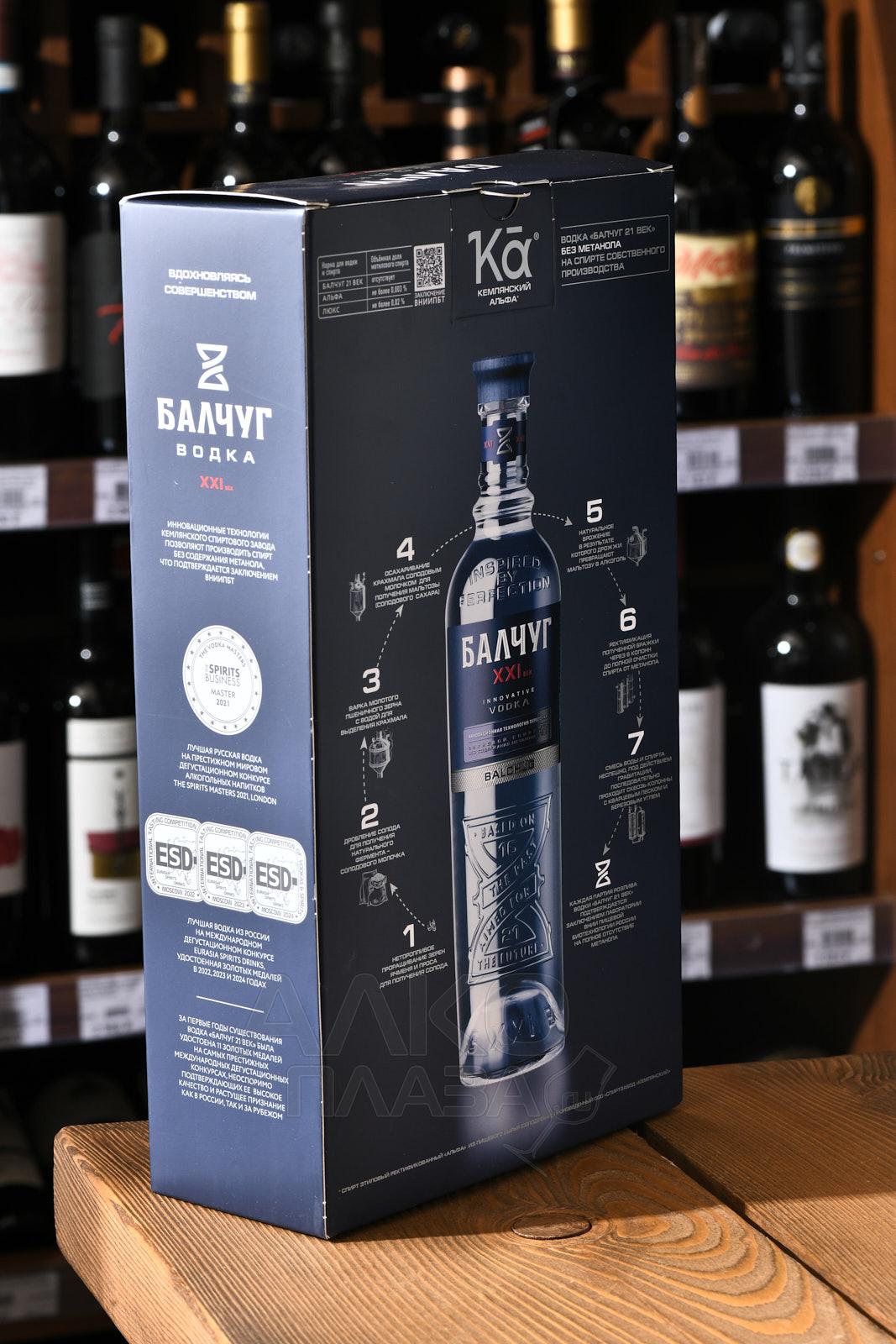 Водка Балчуг XXI век 0,7 л в п/у + 2 стопки — стильно оформленный презент, который уже готов к вручению по какому-либо торжественному поводу. Российский алкоголь создан на стыке исторических традиций и инноваций. Рецептура осталась классической: спирт (солодовый) ректификованный категории «Альфа» и специально подготовленная мягкая вода. Современная технология перегонки позволяет получать спиртовую основу без метанола (применяется усовершенствованная бражно-ректификационная установка, в которой есть дополнительная очищающая колонна). Водку перед розливом тщательно фильтруют активированным углем, никакие дополнительные ингредиенты в нее не добавляют. На стекле бутылки видны песочные часы, олицетворяющие собой течение времени — от прошедших веков к настоящему и будущему. Горлышко имеет форму навершия царского скипетра. Название Балчуг — отсылка к острову, на которой в XVI веке указом Ивана Грозного был открыт первый на Руси кабак. Качество инновационной водки проверялось в лаборатории Всероссийского НИИ пищевых биотехнологий. Алкоголь попал в рейтинг Forbs как «Лучшая российская водка» и был отмечен аналогичным титулом на международном конкурсе The Spirits Masters.