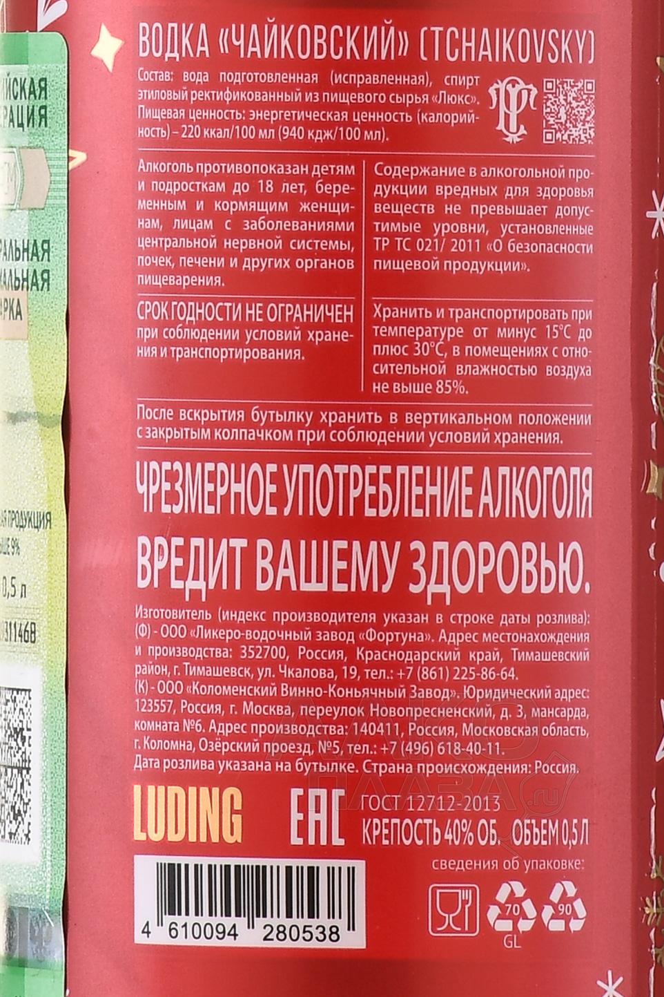 Водка Чайковский 0,5 л в п/у создаётся на основе ректификованного спирта высокой очистки и мягкой подготовленной воды, прошедшей многоступенчатую фильтрацию. Производитель использует зерновое сырьё из центральных регионов с умеренным климатом и богатыми минералами почвами. Водно-спиртовая смесь проходит обработку через угольные каскады и серебряные фильтры, что уменьшает жёсткость и делает текстуру более гладкой. В технологическом процессе уделяют внимание стабилизации при низких температурах, благодаря чему напиток сохраняет прозрачность и стойкость. Финальная фильтрация формирует мягкое послевкусие и подчёркивает строгий классический характер. Упаковка подчёркивает премиальный образ и делает бутылку подходящей для подарка.