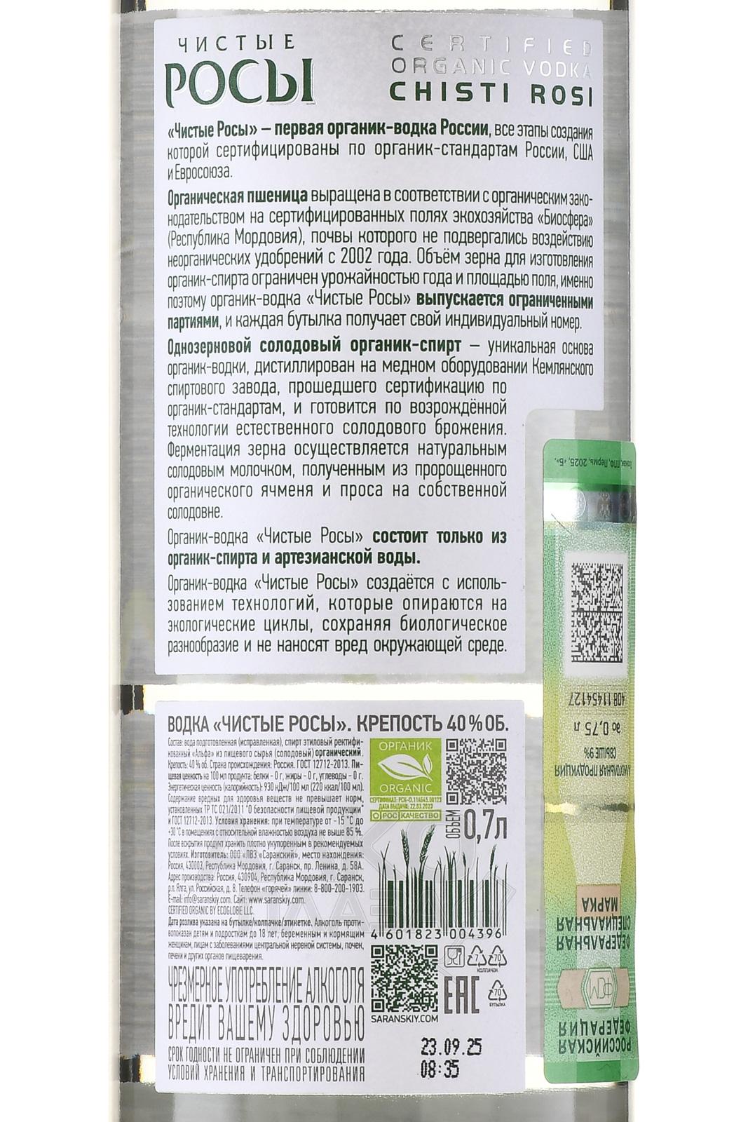 Водка Чистые росы 0,7 л в п/у с 2 стопками производится в России и относится к категории премиальных напитков с акцентом на натуральность и чистоту состава. Основа — отборное зерно, выращенное в экологически благоприятных районах средней полосы. Производитель использует мягкую воду, прошедшую многоступенчатую фильтрацию через природные минералы и березовый уголь. Органический спирт класса «Альфа» придает напитку особую мягкость, а технология холодной фильтрации сохраняет свежесть и прозрачность вкуса. Образец создается с учетом природного цикла — от зерна до готового продукта, что подчеркивает философию бренда, ориентированного на экологичный подход и качество. Комплект с двумя аксессуарами делает бутылку готовым подарочным набором, отражающим традиции русского гостеприимства.