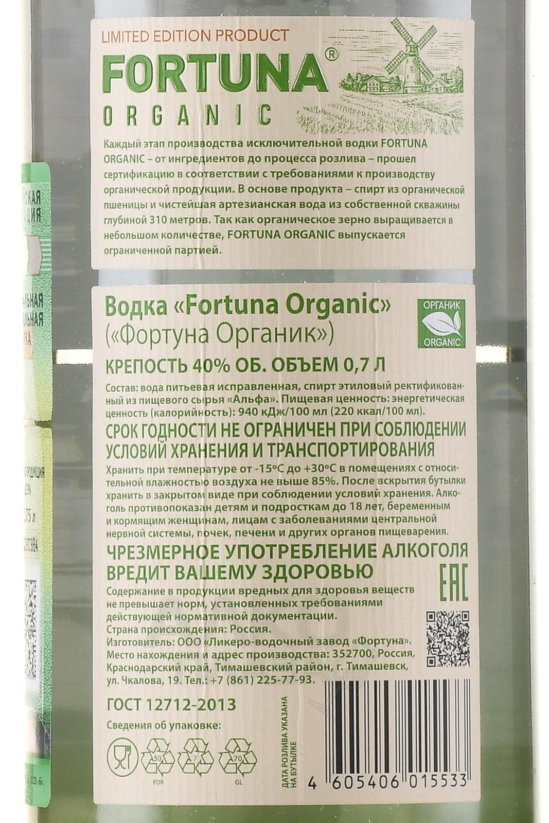 Водка Фортуна Органик 0.7 л в д/у