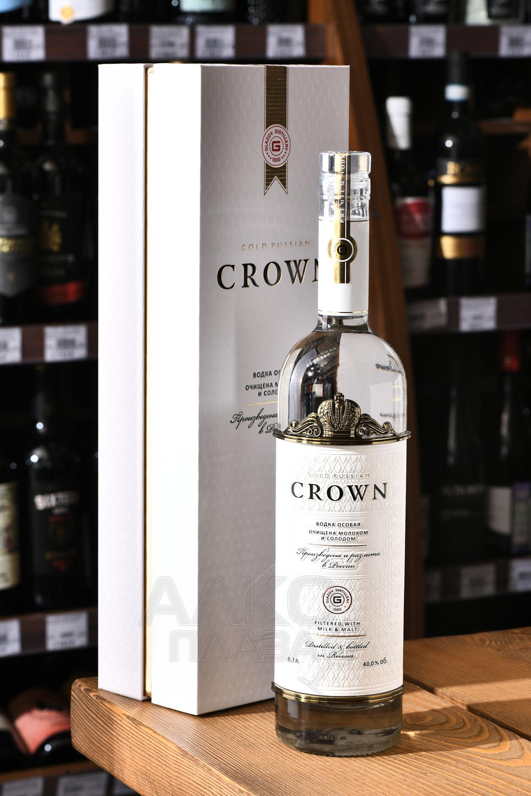 Водка Золотая Корона России 0.7 л в п/у – традиционный русский напиток класса люкс , который изготавливают из спиртов отборного качества. Важным ингредиентом при производстве водки является также анисовое масло и настой из пшенично-ржаного хлеба. Готовый напиток разливают по минималистичным бутылкам.