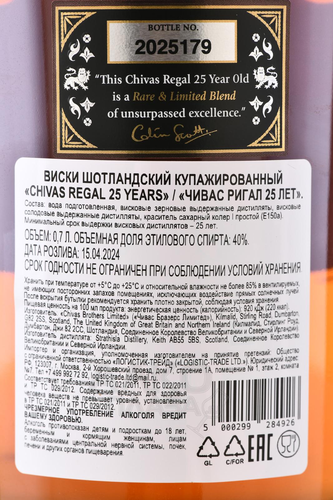 Chivas Regal 25 years - виски Чивас Ригал 25 лет 0.7 л