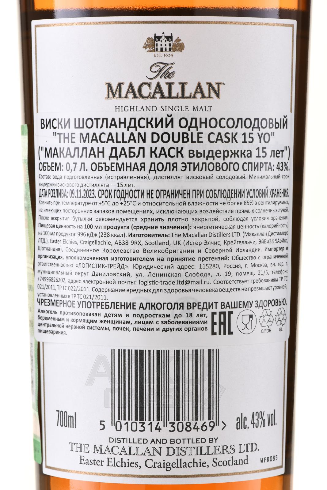 Macallan Double Cask Matured 15 years old gift box - виски Макаллан Дабл Мейчурд 15 лет 0.7 л в п/у