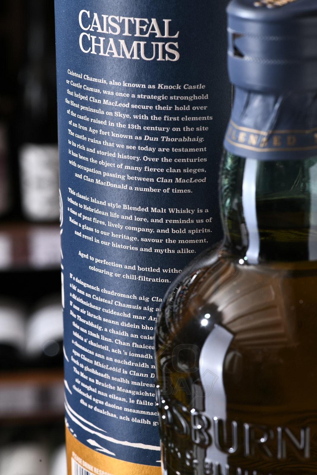 Виски солодовый Castle Chamuis 12 лет 0,7 л в тубе — классический по стилю островной бленд, созданный из тщательно отобранных возрастных дистиллятов. Характер у него напористый, морской, многогранный. Этот стильно оформленный скотч цельный и сбалансированный, прекрасный подарок для ценителя. Основное время (12 лет и более) выдержка протекала в рефильных хогсхедах и экс-бурбонных бочках первого наполнения, далее купаж из тщательно отобранных мастером-блендером спиртов дозревал в бочонках из-под хереса Олоросо. Виски не подкрашивался и не проходил холодную фильтрацию перед бутилированием.