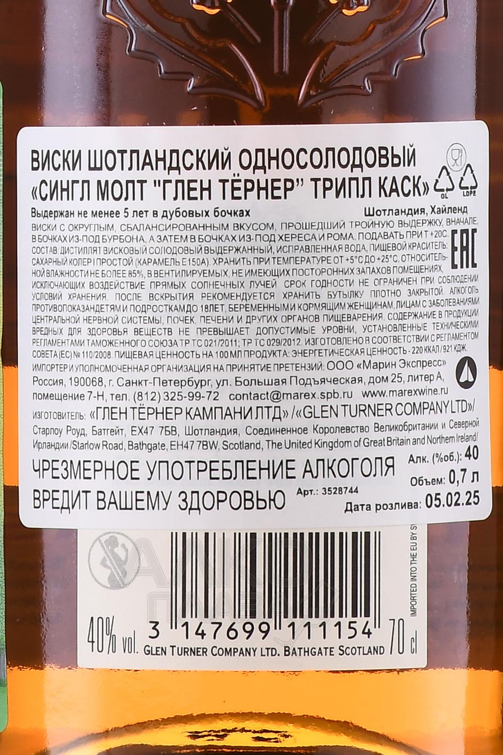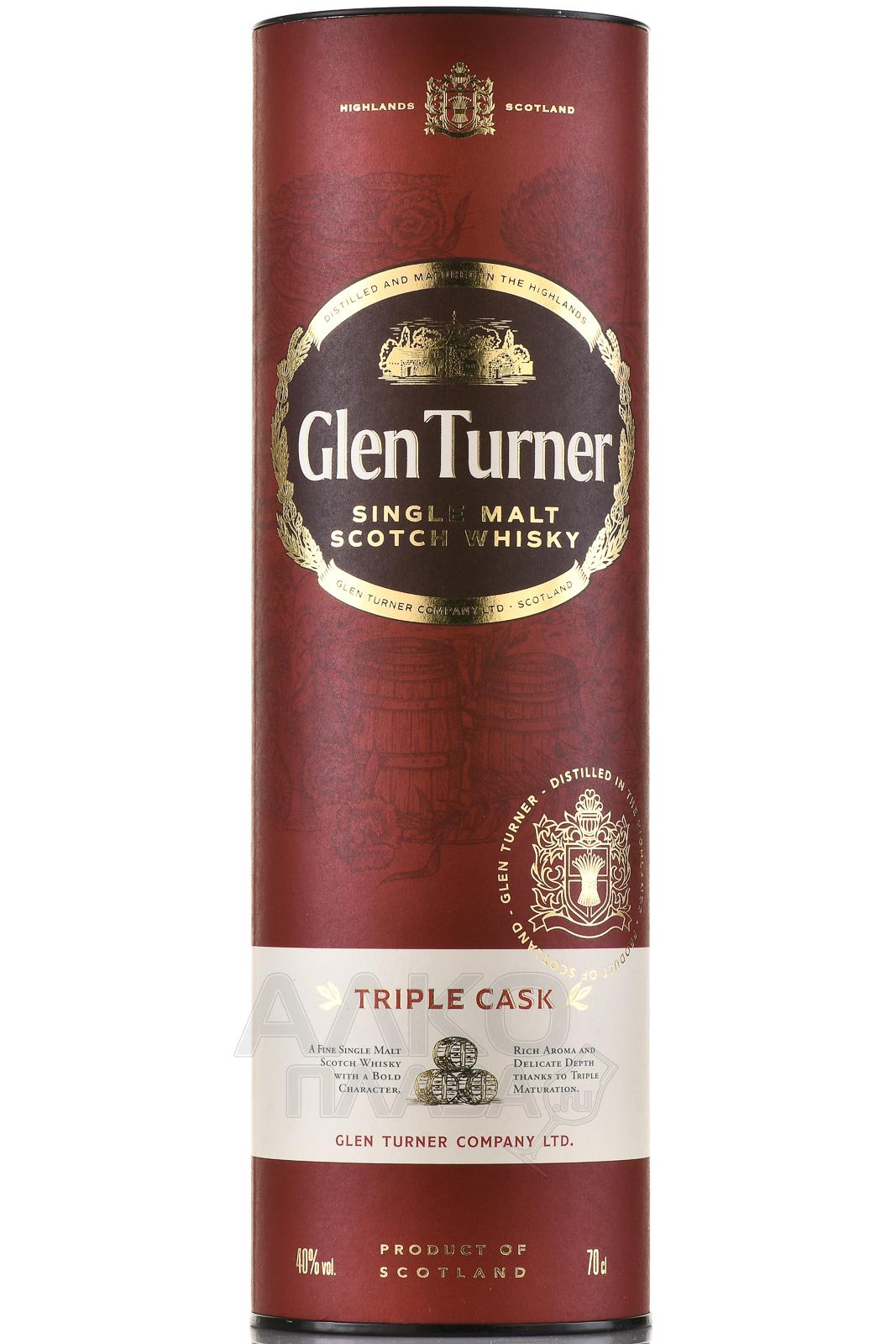 Виски Glen Turner Triple Cask Single Malt 0,7 л в тубе — это односолодовый скотч из региона Хайленд, отличающийся тройной выдержкой. Напиток сначала созревает в бочках из-под бурбона, затем в бочках из-под хереса и, наконец, в бочках из-под портвейна. Такой подход придаёт сингл молту многослойный оригинальный характер. Общий срок выдержки — не менее 5 лет. Виски Глен Тернер Трипл Каск получил признание на международных конкурсах: золотые медали на International Wine & Spirit Competition и China Wine & Spirits Awards, а также серебро на World Whiskies Awards. Вариация в стильной тубе станет отличным праздничным подарком.