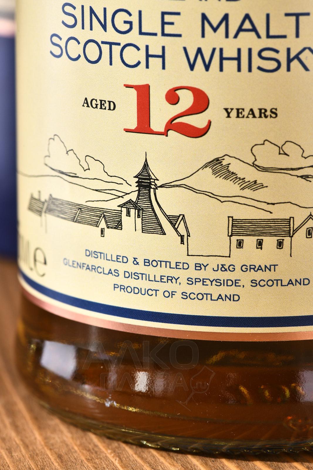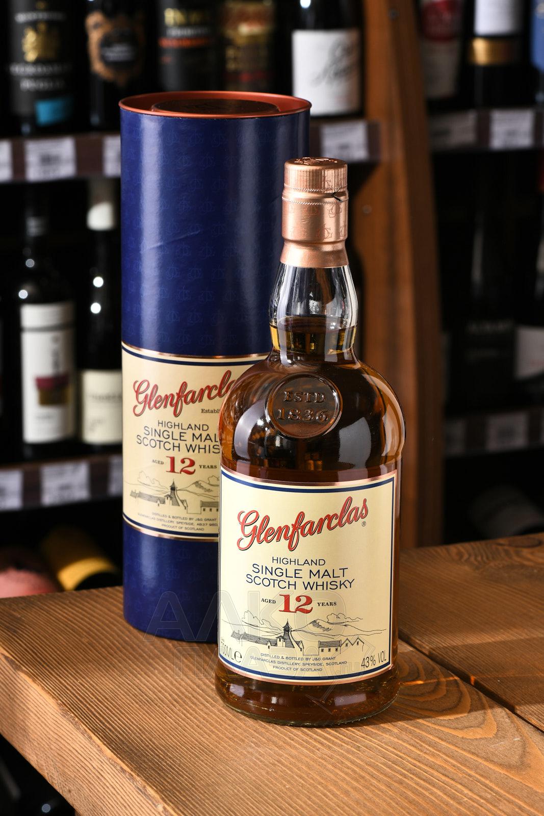 Виски Glenfarclas 12 лет — популярная односолодовая вариация в ассортименте всемирно известной шотландской компании из региона Спейсайд, предлагаемая при спиртуозности 43%. Она выдерживалась на протяжении 12 лет в баррике, где когда-то вызревал классический испанский херес Oloroso. Бутылка 700 мл, служащая упаковкой напитка, находится в сувенирной цилиндрической коробке синего цвета.