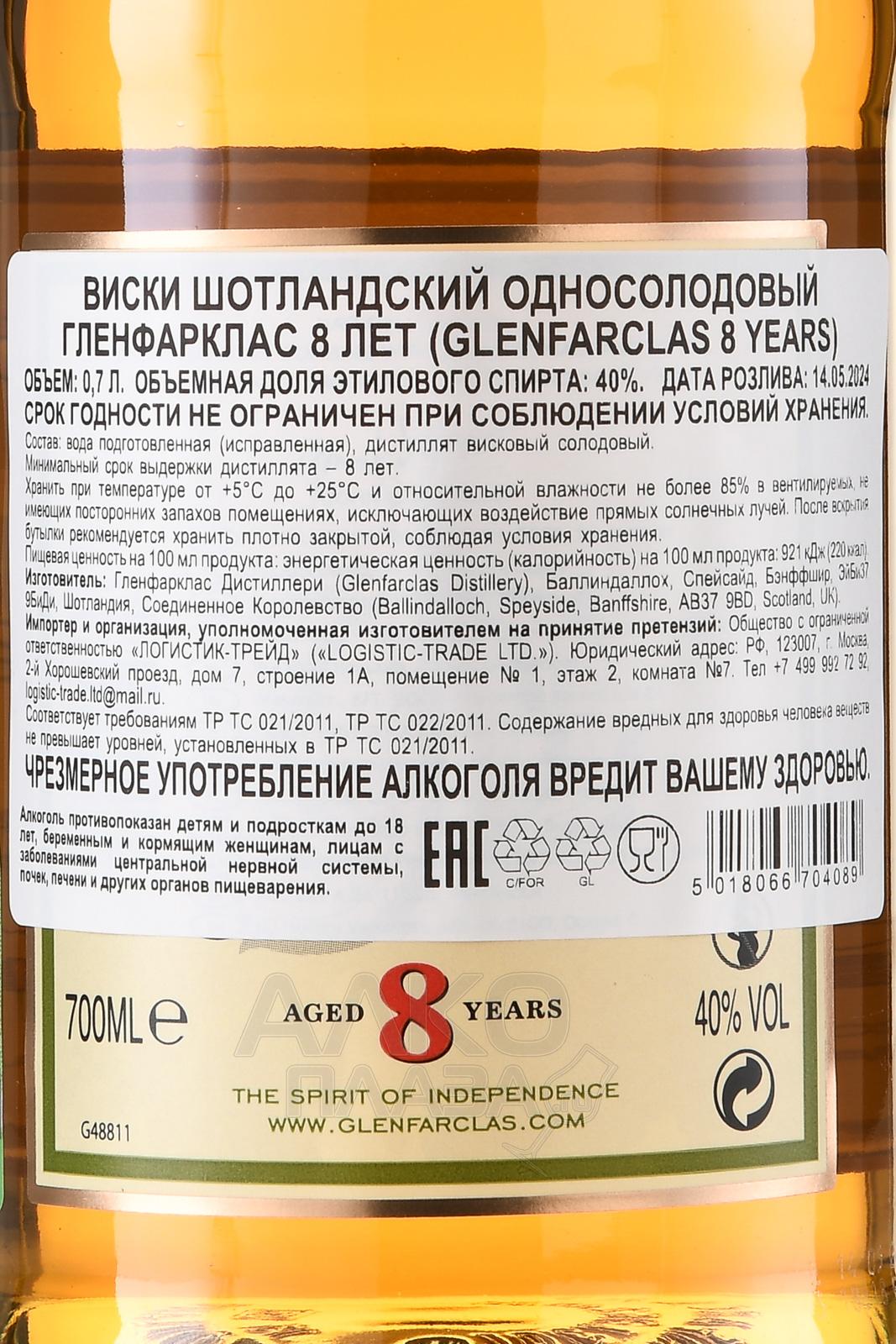 Glenfarclas 8 years - виски Гленфарклас 8 лет 0.7 л в тубе