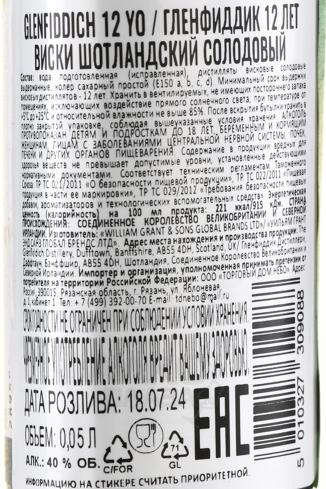 Виски Glenfiddich 12 years old 0.05 л был произведён в знаменитой шотландской долине Спейсайд с использованием традиционного процесса двойной перегонки и выдержки в бочках из американского и европейского дуба. Мастера-дистиллеры вручную отбирали подходящие дубовые бочки, придавая напитку насыщенность и многогранность вкуса. Важной особенностью технологии стала выдержка на протяжении не менее 12 лет, в течение которых виски приобретал характерную гладкость и сбалансированность.