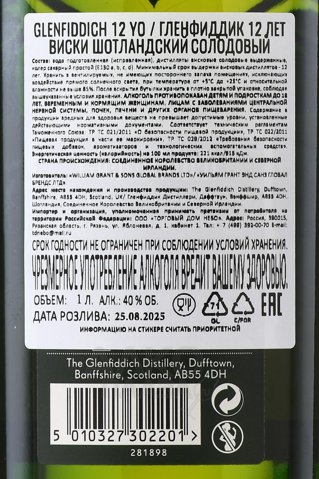 Glenfiddich 12 Years Old - виски Гленфиддик 12 лет 1 л в тубе