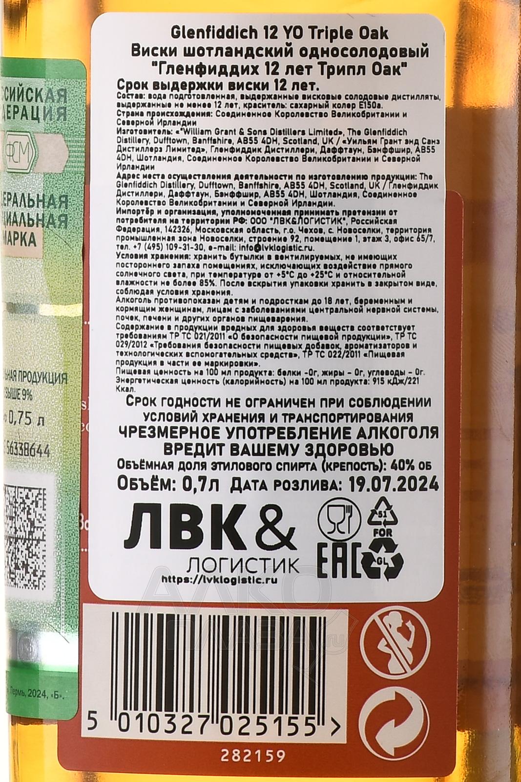 Glenfiddich 12 Years Old Triple Oak - виски Гленфиддик 12 лет Трипл Оак 0.7 л в тубе