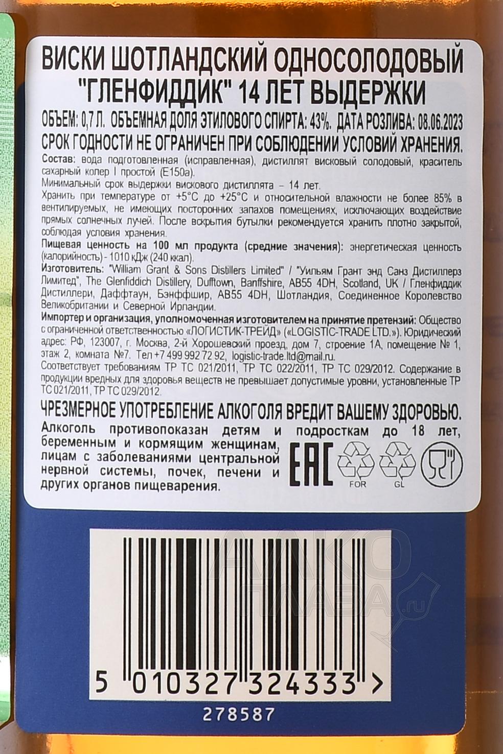 Glenfiddich 14 Years Old - виски Гленфиддик 14 лет 0.7 л в тубе