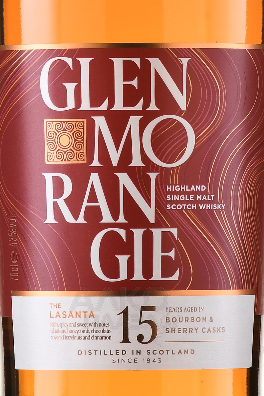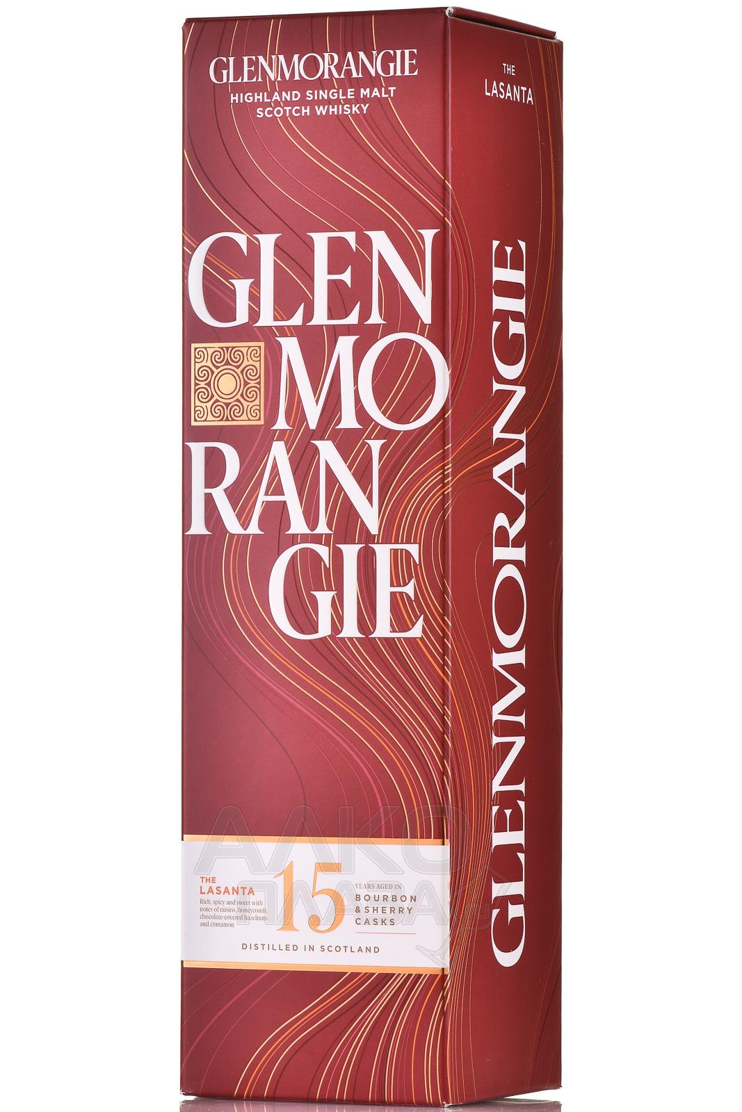 Виски Glenmorangie The Lasanta 15 лет 0.7 л в п/у — шотландский сингл молт премиум-класса, сочетающий элегантность и глубину вкуса. Для его создания используется только местный ячмень и чистейшая вода из озера Тарлоджи, богатая природными минералами. Первая часть — 13 лет в бочках из-под бурбона, изготовленных из американского белого дуба, этап финального дозревания — 2 года в бочках из-под хереса Олоросо. Это придает скотчу теплые ноты сухофруктов, орехов и карамели. Слово «ласанта» в переводе с гэльского языка означает «тепло» и символизирует южный характер напитка. Виски не проходит холодную фильтрацию, благодаря чему сохраняет естественную полноту вкуса. Гленморанджи Ласанта неоднократно получал высокие оценки на международных конкурсах, отмечаясь за богатство аромата и сбалансированный стиль.