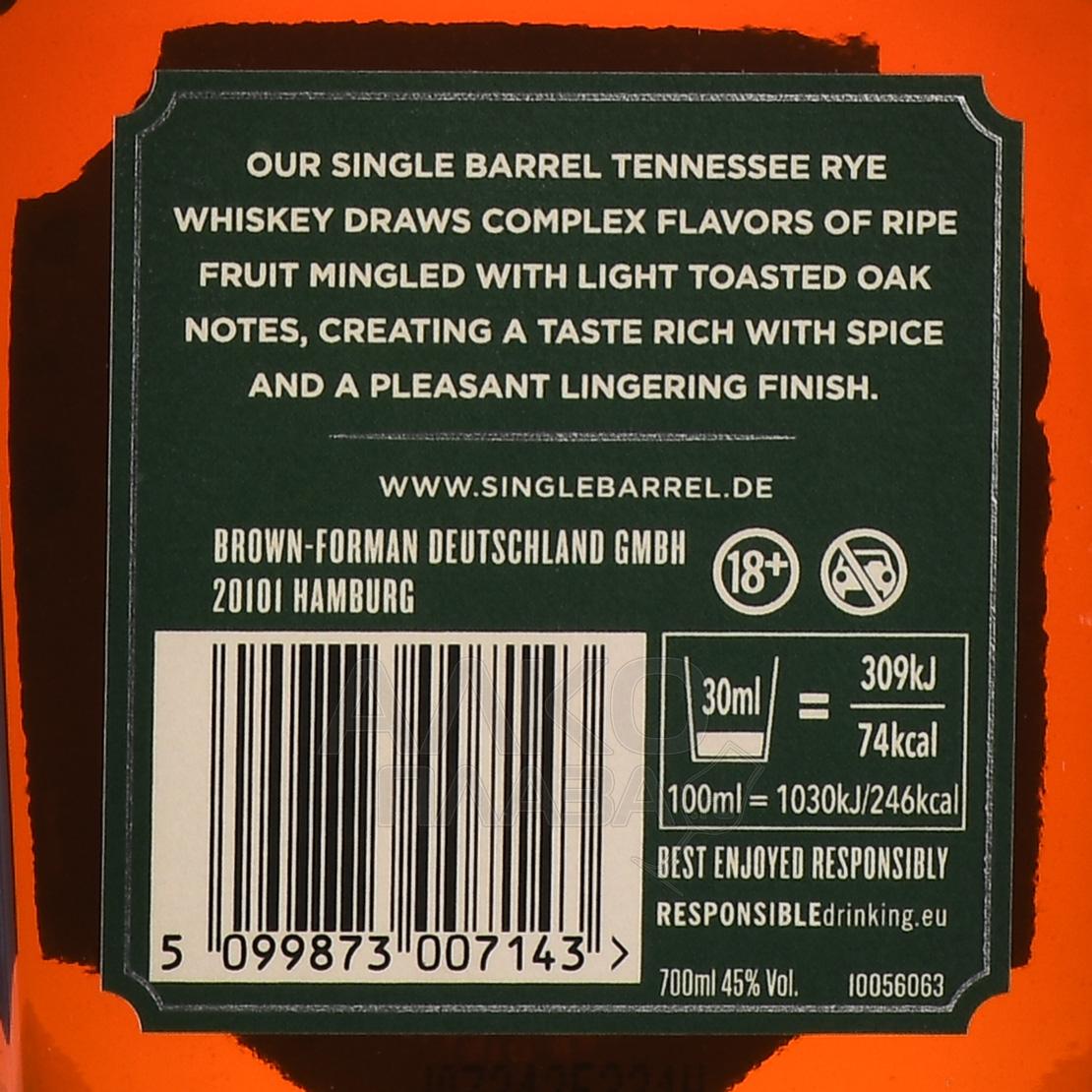 Виски зерновой Jack Daniel`s Single Barrel Rye 0,7 л в п/у создается по оригинальной рецептуре, предусматривающей использование 70% ржи. Также в составе 18% кукурузы и 12% ячменя. Высокий процент ржаного зерна делает напиток особенно насыщенным и ароматным. Для выдержки применяются бочки из обожжённого американского дуба, которые отбираются вручную. Они находятся в верхней части складов (так называемый «Ангельский насест) в Линчбурге и подвергаются сезонным колебаниями температуры, за счет чего процесс созревания дистиллятов протекает интенсивнее. Из 100 бочек мастер-дистиллятор выбирает всего одну, из которой разливается около 300 бутылок виски серии Сингл Баррел. Каждый экземпляр при этом получается редким и уникальным и упаковывается в подарочную коробку, чтобы стать великолепным презентом по особенному случаю.