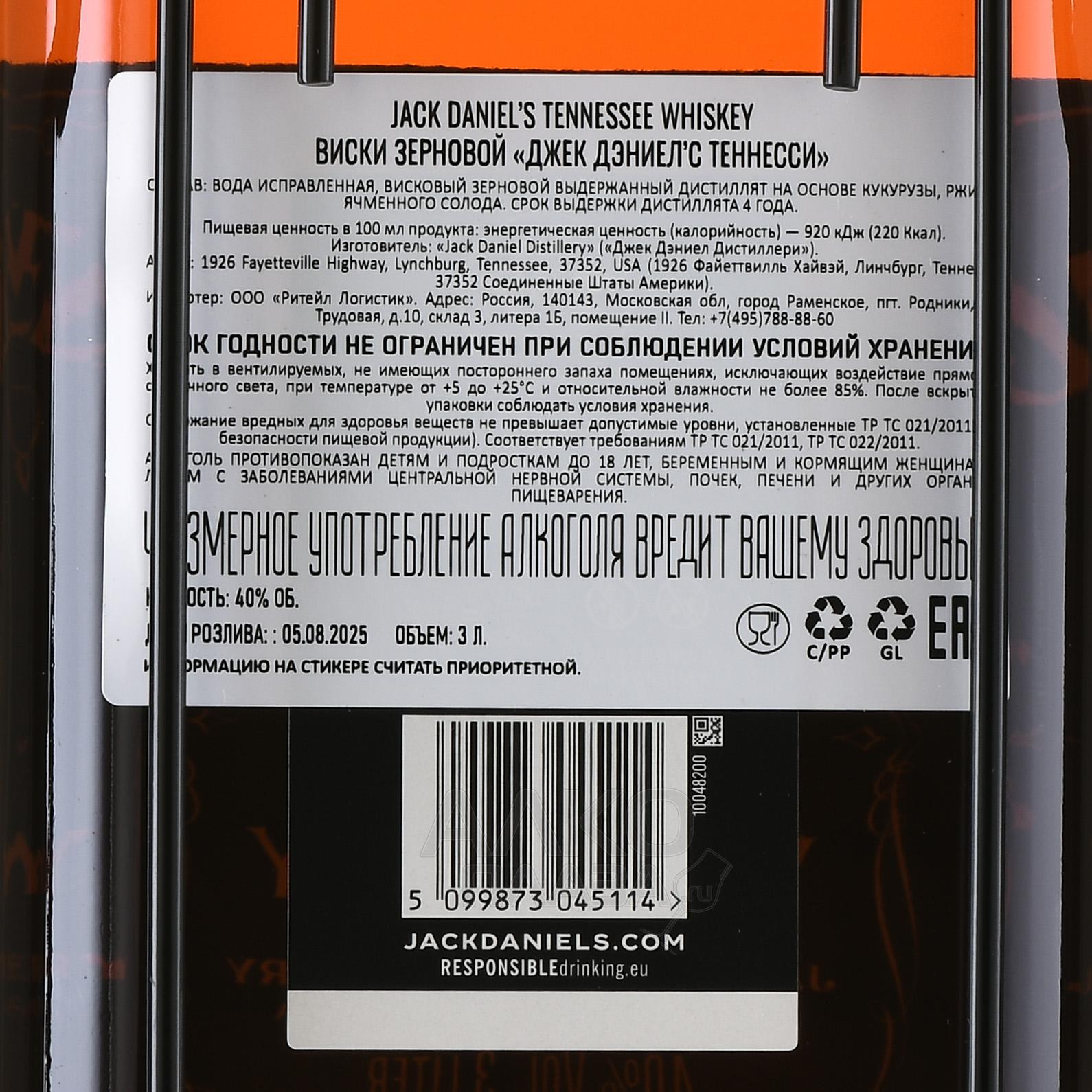 Виски Jack Daniel`s Tennessee 3 л – это классический представитель американского сорта Tennessee Whiskey, который изготавливается с использованием уникальной технологии фильтрации через уголь из сахарного клена. Этот процесс, называемый charcoal mellowing, придает напитку мягкость и насыщенность. Алкоголь производится на старейшей зарегистрированной дистиллерии в США в Линчберге, штат Теннесси, где используются только высококачественные ингредиенты: чистейшая родниковая вода, кукуруза, ячмень и рожь. Трехлитровая бутылка является не только великолепным выбором для коллекционеров, но и удобным форматом для больших компаний.