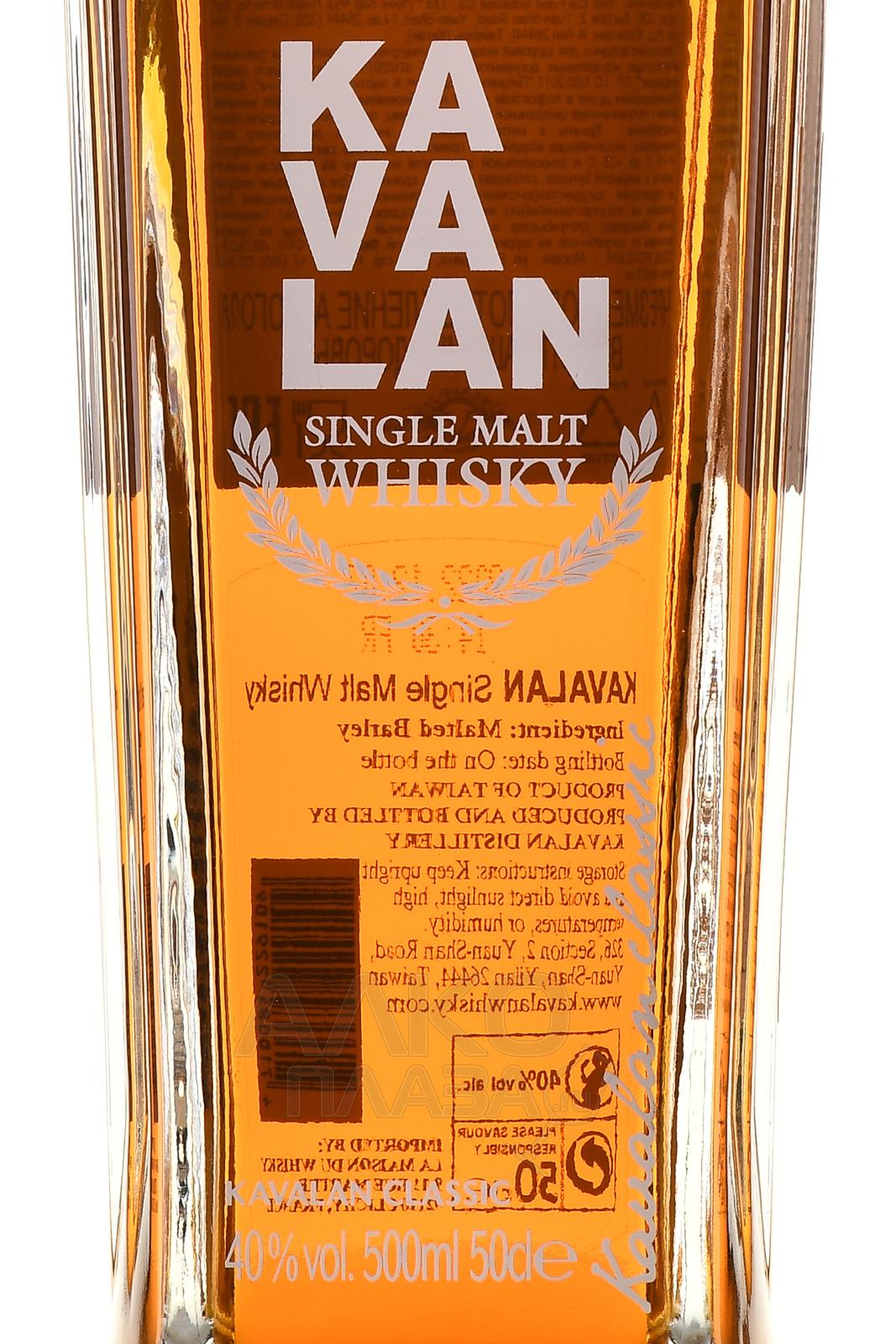 Виски Kavalan Classic 0,5 л в п/у производится в Тайване на винокурне King Car Distillery, расположенной в уезде Илан. Этот регион известен мягким морским климатом и чистейшей родниковой водой, поступающей из горного массива Сюэ Шань. Благодаря влажному воздуху и высоким температурам процессы созревания спиртов здесь идут быстрее, чем в Европе, что придаёт напитку особую плотность и глубину. Производится классический образец из ячменного солода, поставляемого из Шотландии, а дистилляция проходит в медных перегонных кубах, что обеспечивает чистоту и многослойность аромата. Выдержка ведётся в комбинации бочек из-под бурбона, хереса и вина. Этот релиз стал первой версией, с которой началась история Кавалан, и до сих пор остаётся символом тайваньского мастерства.