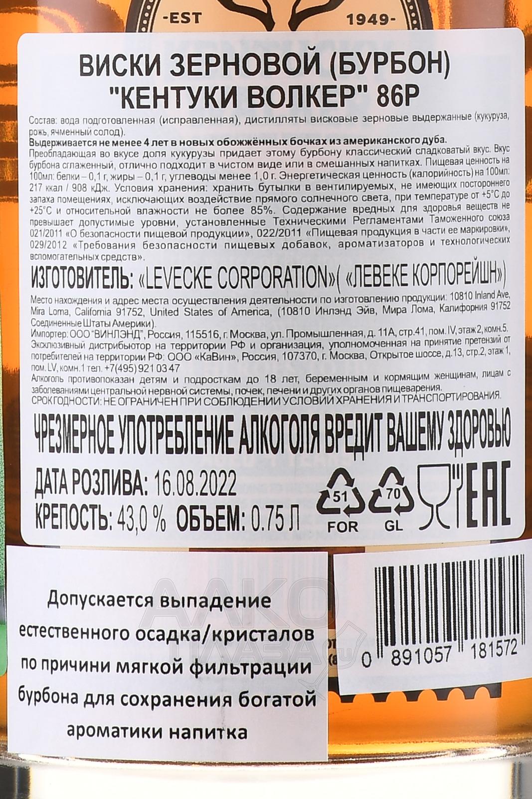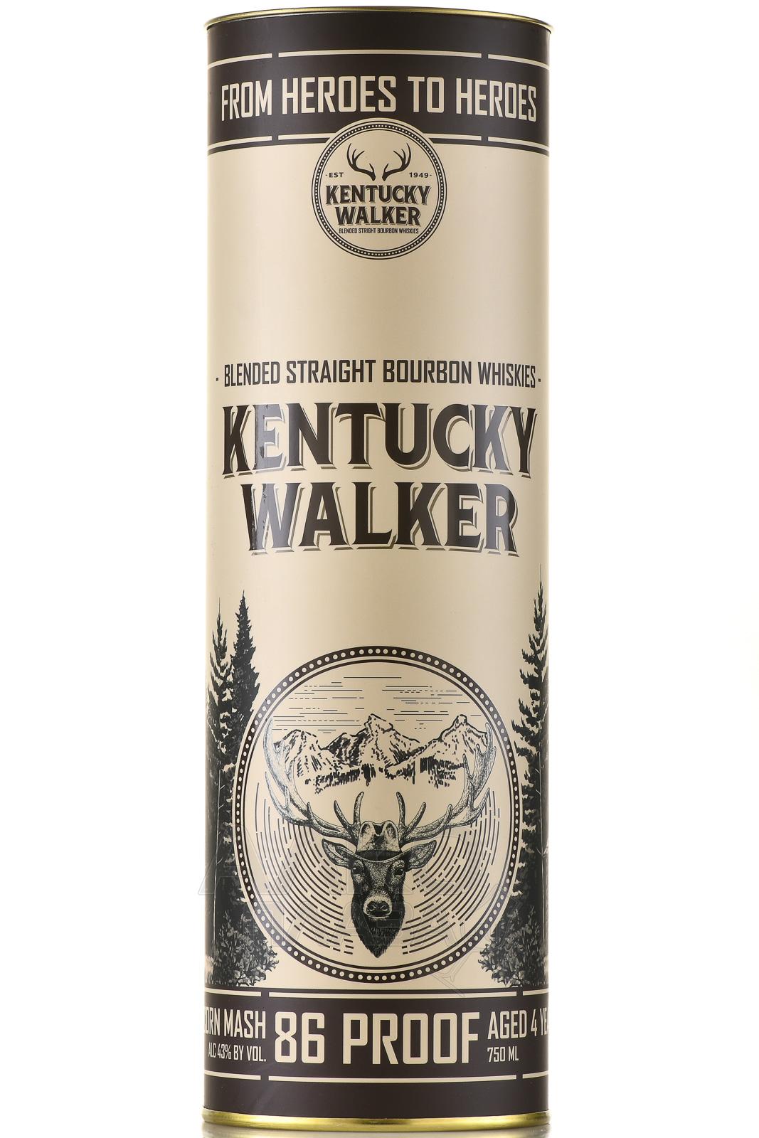 Виски Kentucky Walker 0,75 л в тубе — американский купажированный образец, выпускаемый в штате Кентукки, знаменитом регионе производства крепкого американского алкоголя. Напиток изготавливается по традиционной рецептуре. Производственный процесс завершается выдержкой в обожжённых дубовых бочках, благодаря чему дистиллят приобретает яркий цвет и характерный вкус. В основе бленда лежит смесь зерновых спиртов, преимущественно из кукурузы, с добавлением солода и ржи, что придает ему баланс сладких и пряных нот.